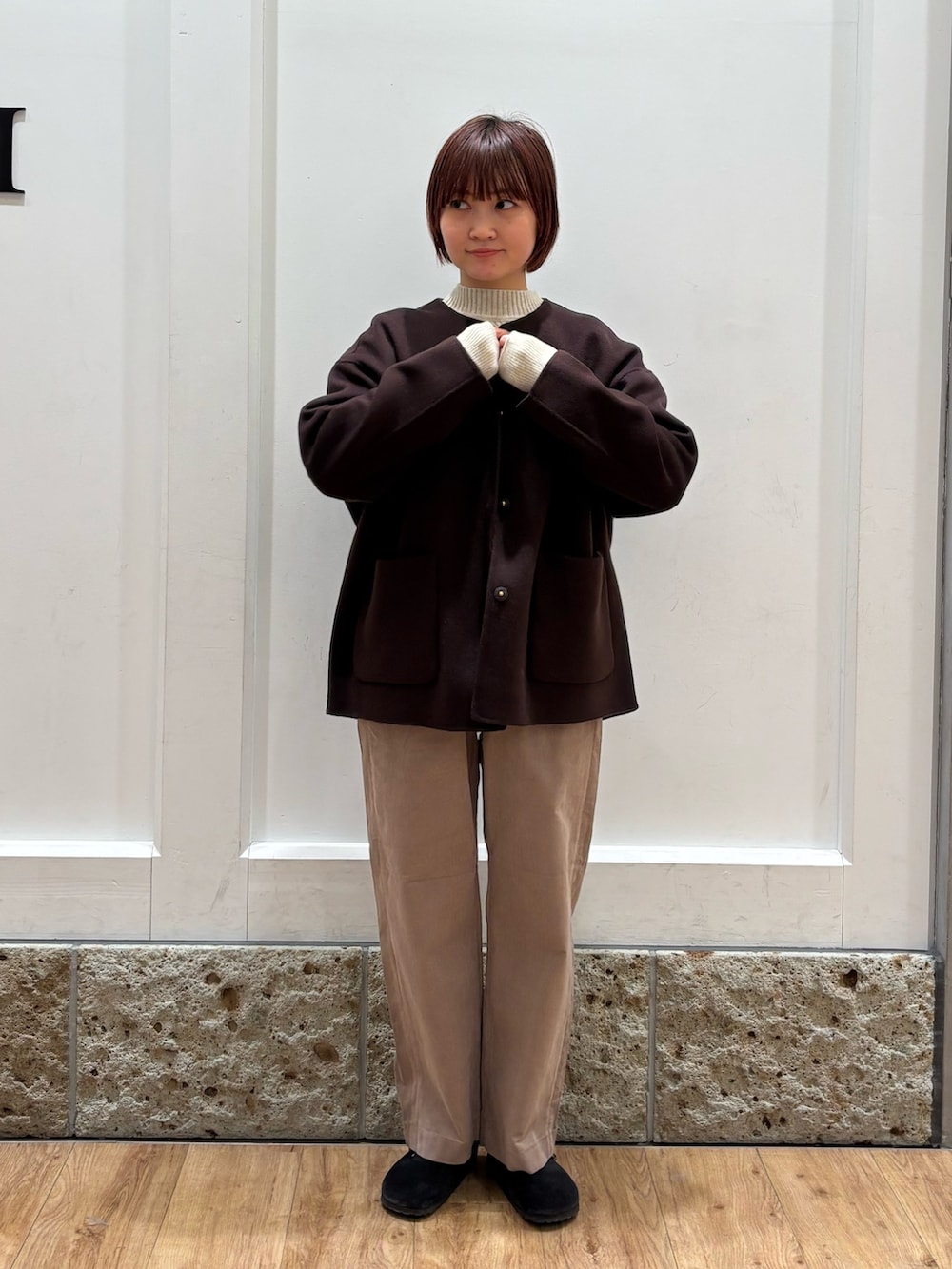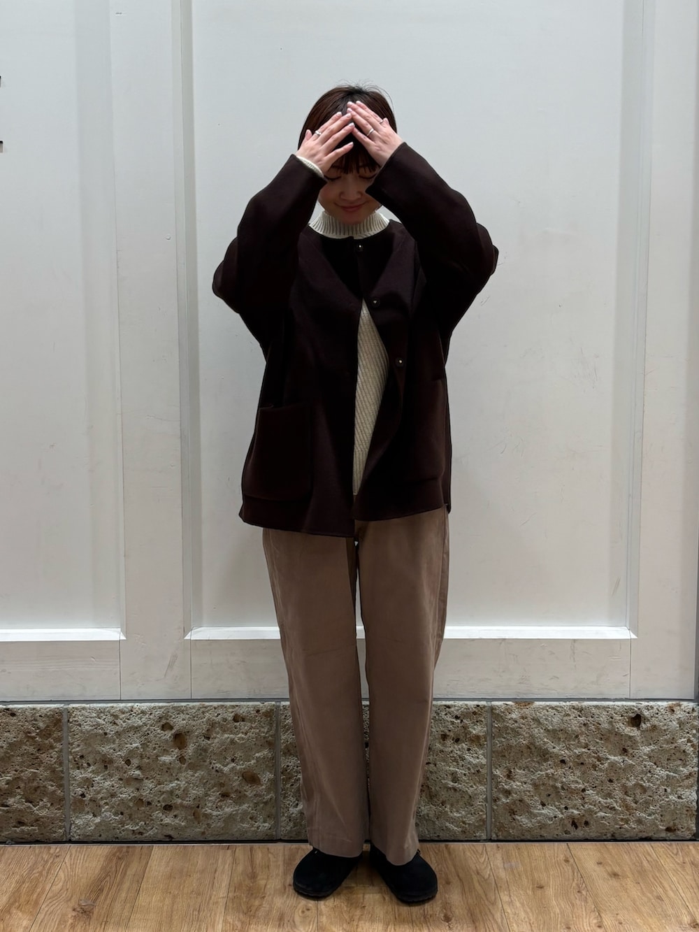 暗くなりがちな冬のアイテムですが、お色味を合わせて着ていただくといつもとは違う雰囲気になりますね◎
