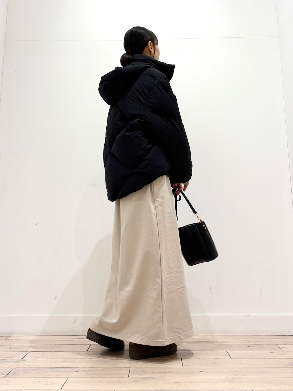 丈は前はすっきり、後ろはお尻が隠れる長さになっているのでワイドパンツやスカートともバランスが取りやすいです◎