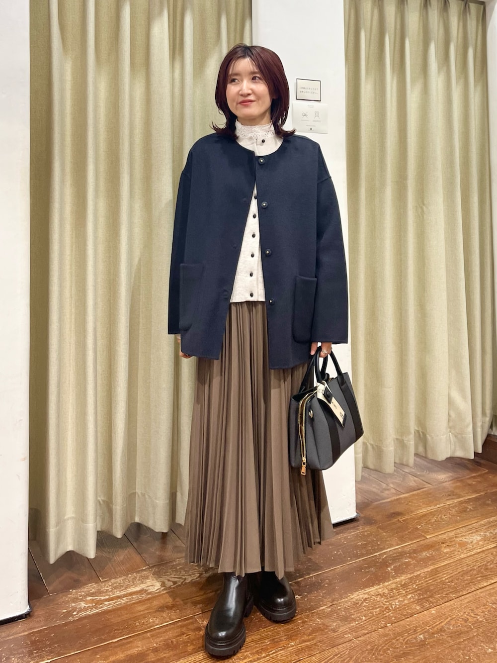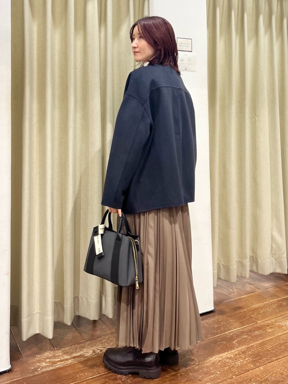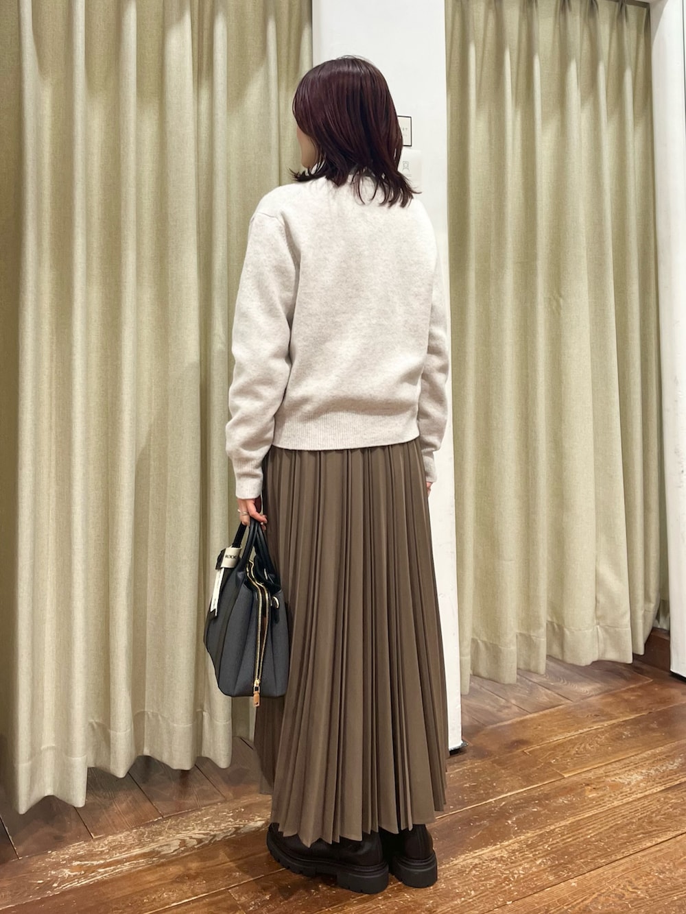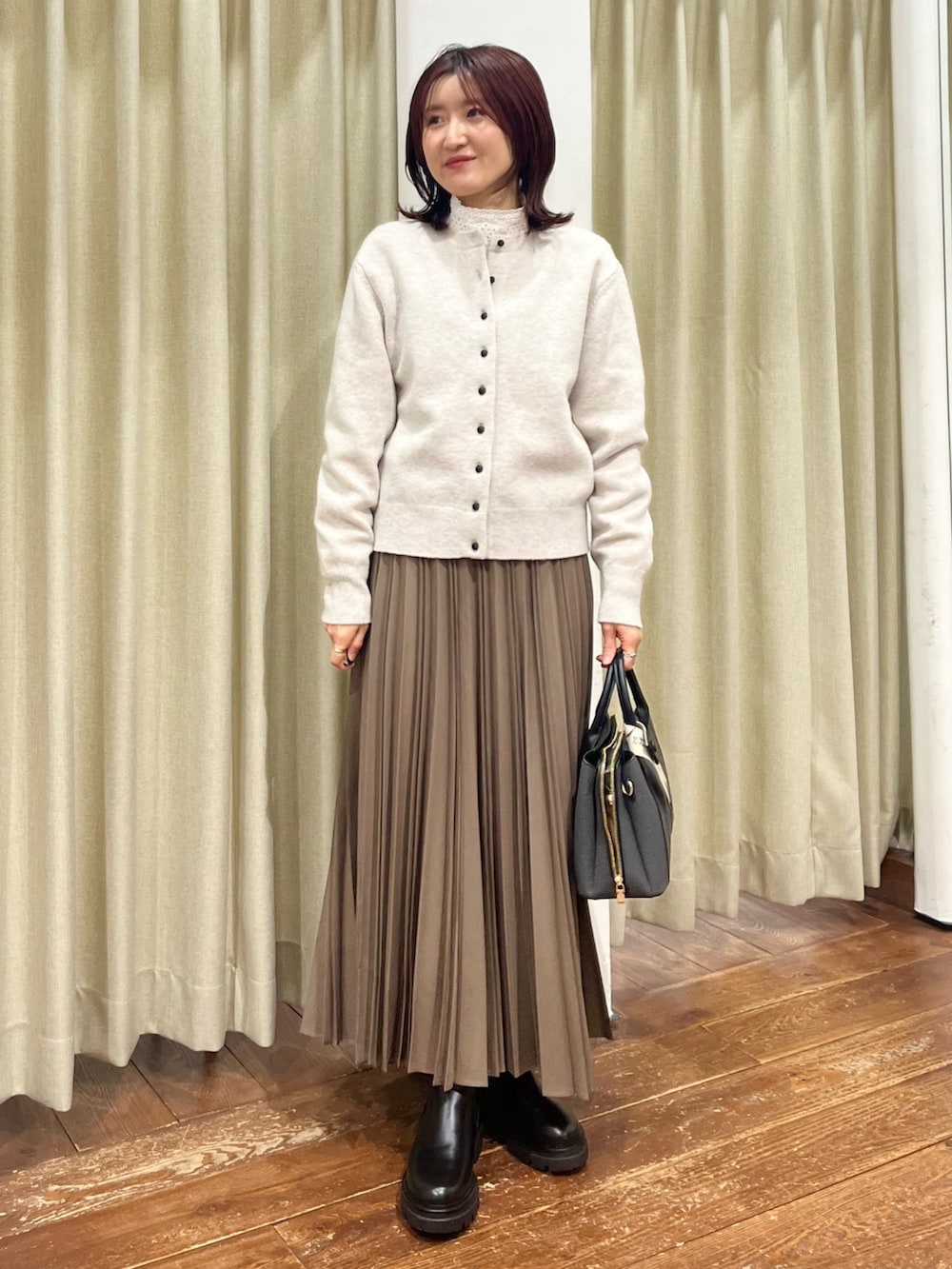 スカートはハリのあるプリーツで長さもしっかりあり着回しもききます。