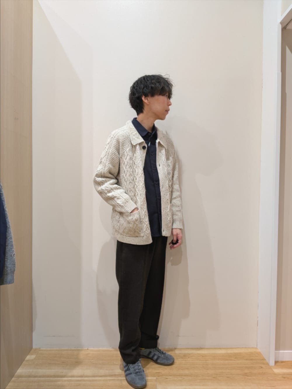 ウール混 フィッシャーマンカーディガン