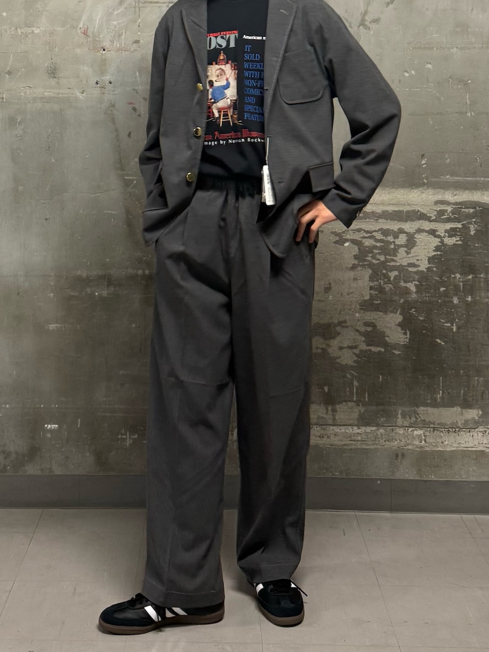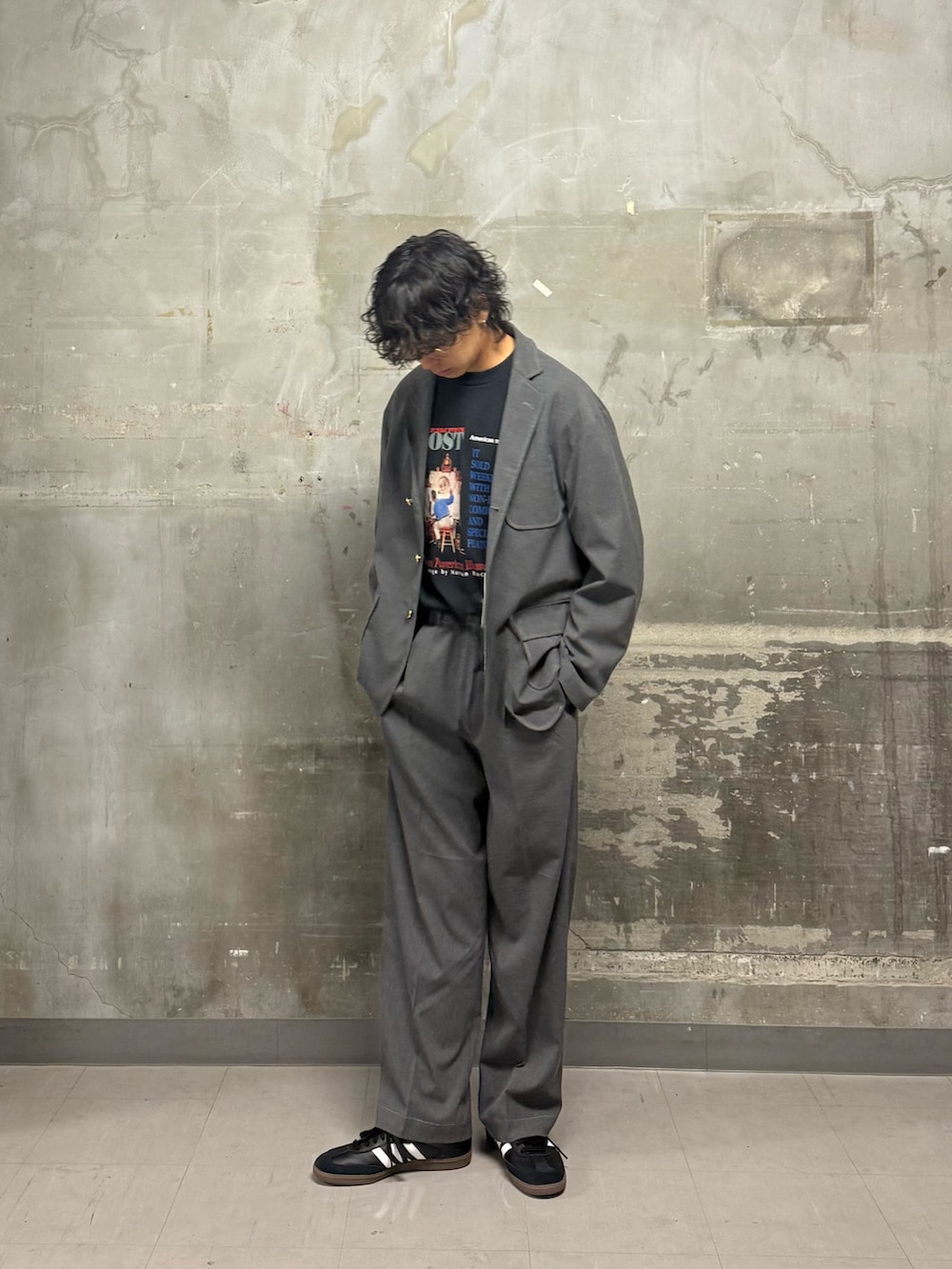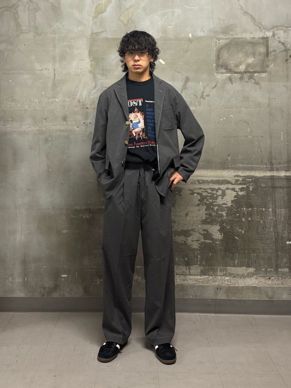 今回のコーディネートは、本来カッチリとした印象を与えるグレーのセットアップですが、あえてオーバーサイズのものを選ぶことで、キメすぎない「余裕」を演出してみようと思い、選んでみました!
