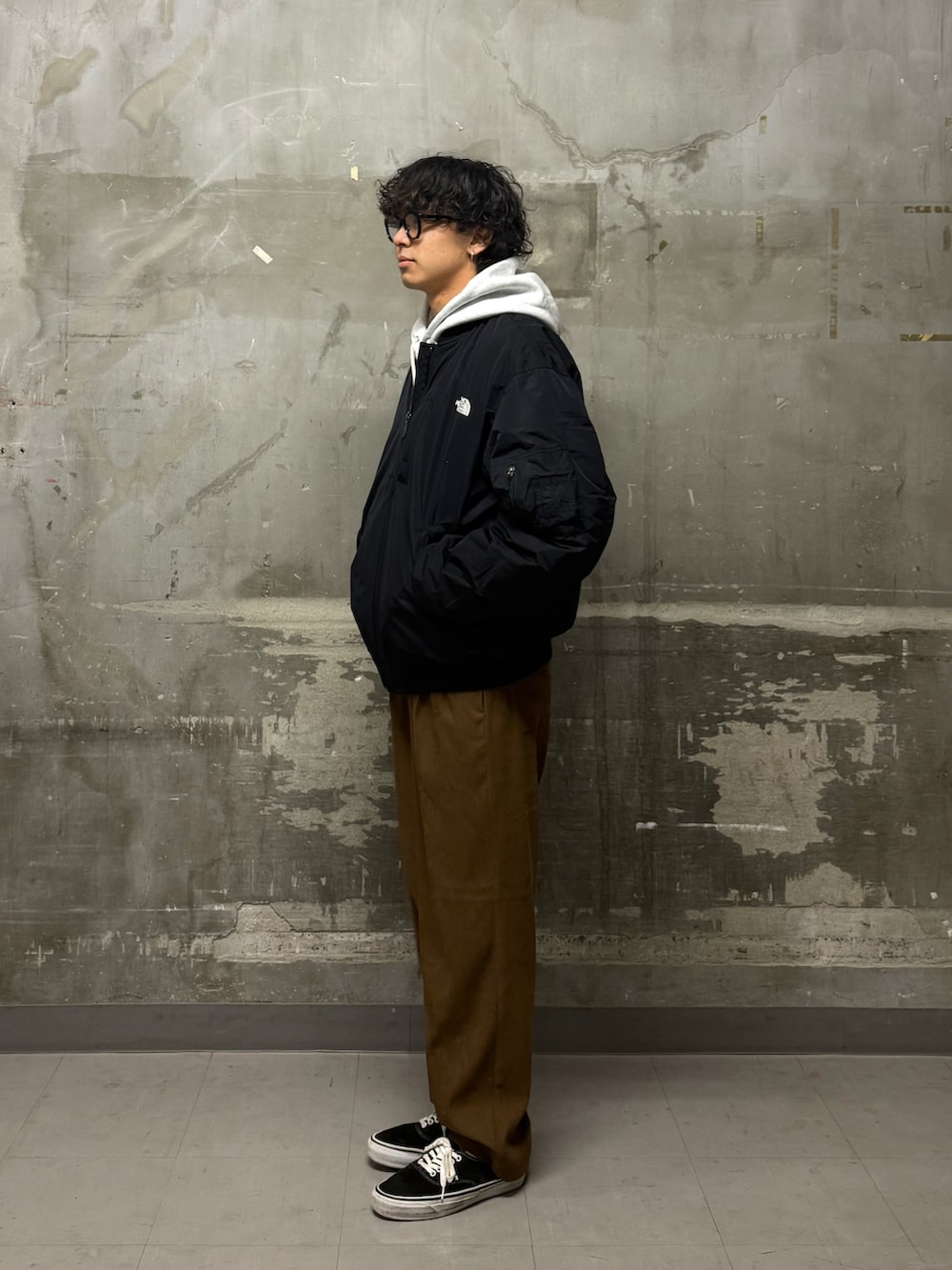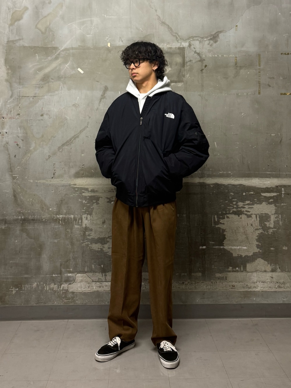 いつもご覧いただきありがとうございます。今回のコーディネートは、上半身はボリュームのあるTHE NORTH FACEのアウターに肉厚なパーカーを重ね、下半身はすとんと落ちるストレート気味のパンツを合わせています。この「上が重め、下がスッキリ」なシルエットが、全体を野暮ったく見せず、洗練された印象を与えると思ったのでチョイスしてみました!