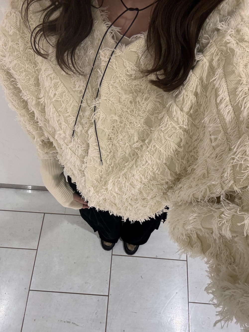 トップスのカーディガンは指を通せるようになっていて、袖が長めのデザインになっていて可愛いです!