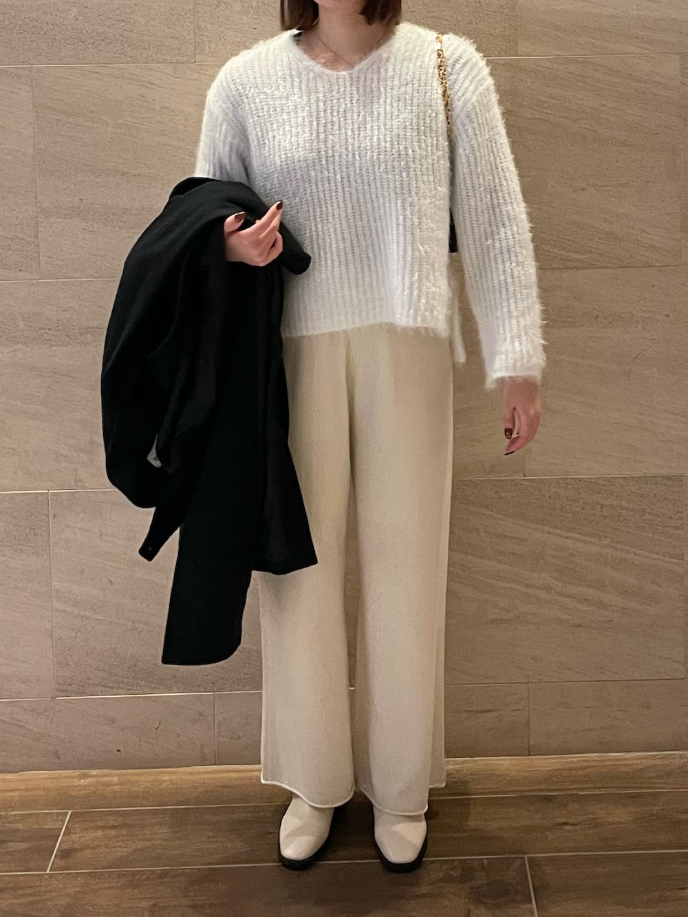 ニット素材でストレートで綺麗めに着れるので可愛い。カジュアルにゆったりした感じで着れるのでおすすめです◎