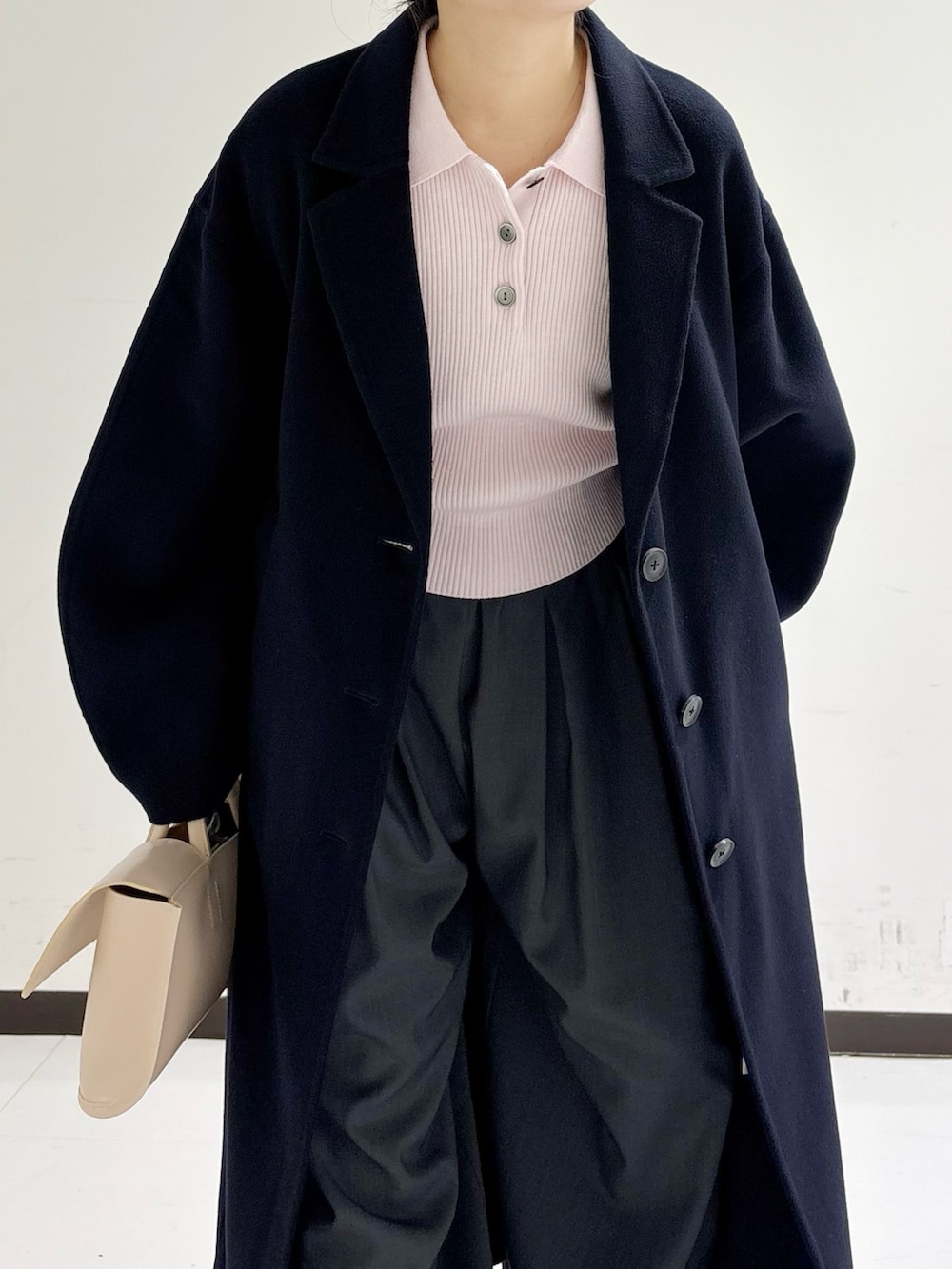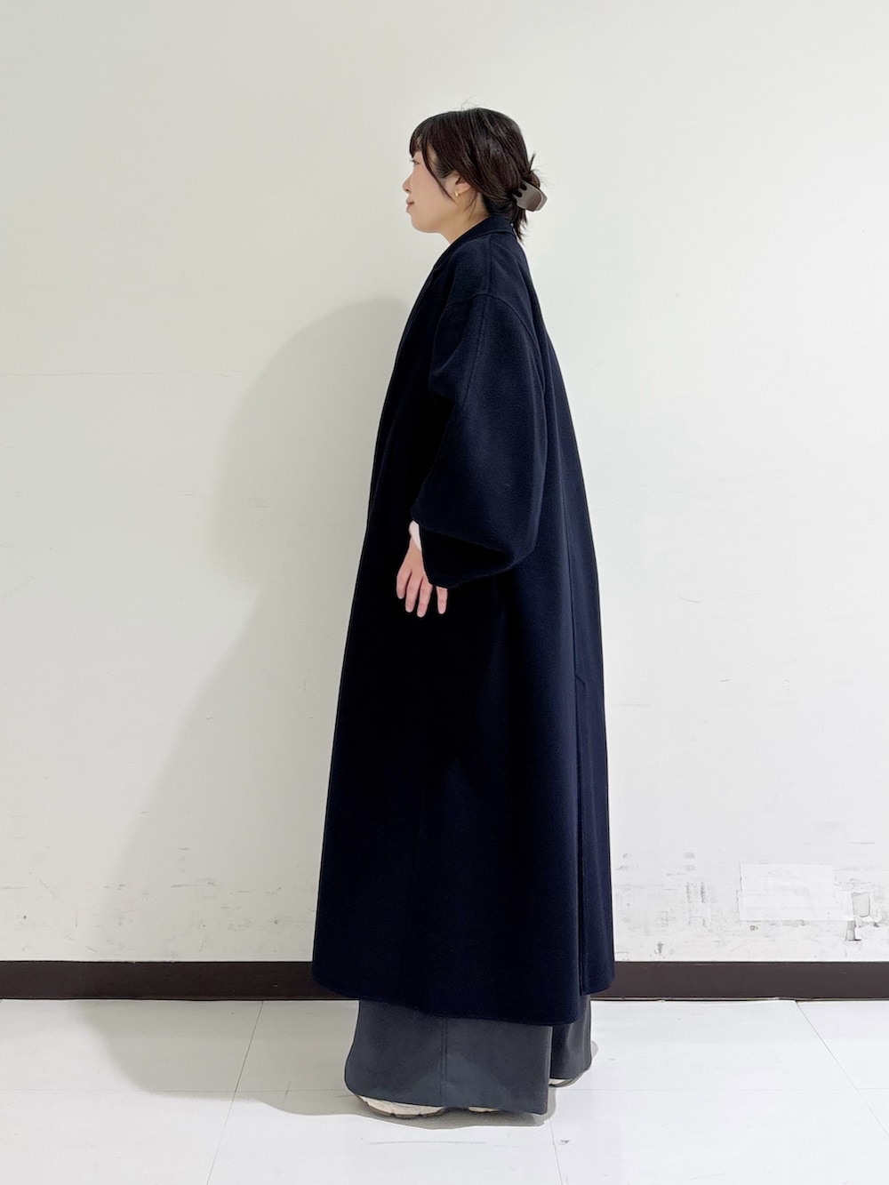 リバー仕立てで裏地が無いのでカーディガンの様な柔らかく体に馴染むシルエットでとっても軽いので小柄な方にもオススメのコートです◎