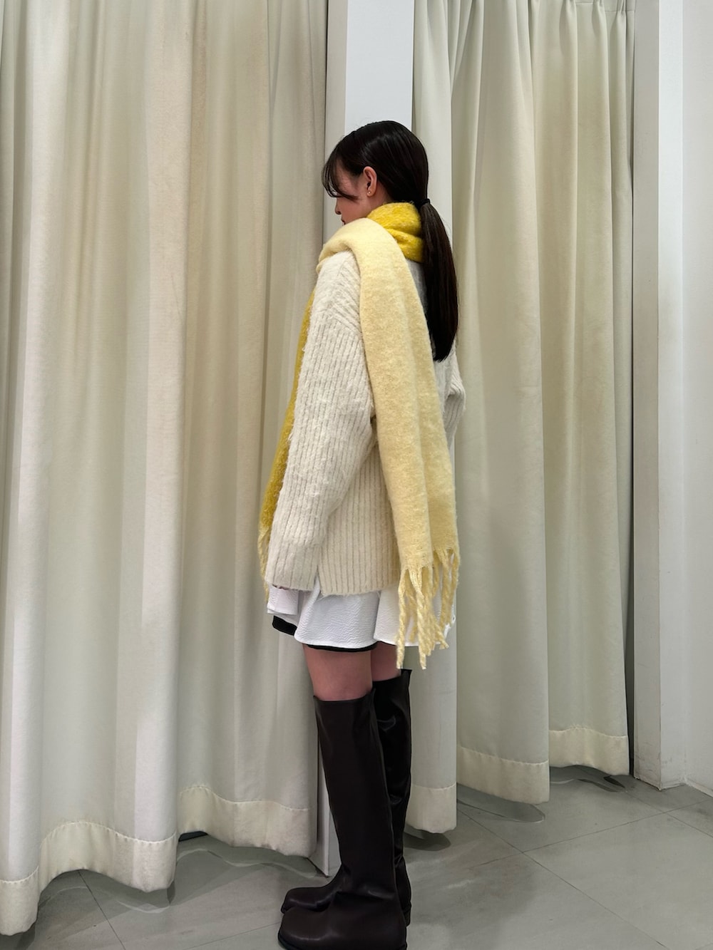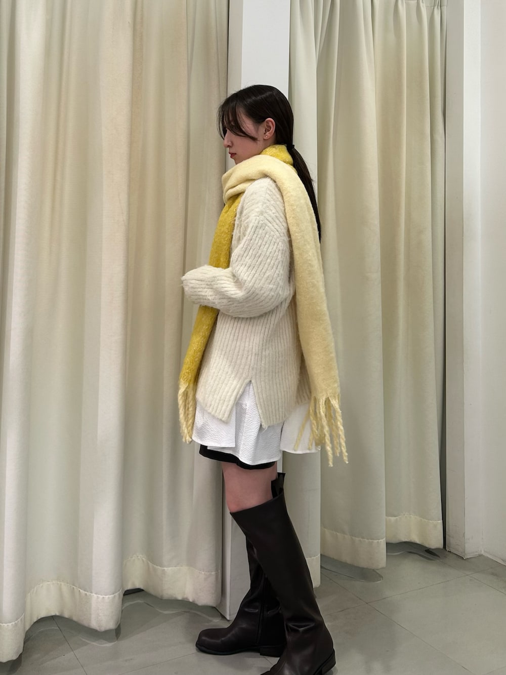 ショート丈ボトム×ロングブーツで、あったかさとすっきり感を両立しました🎶