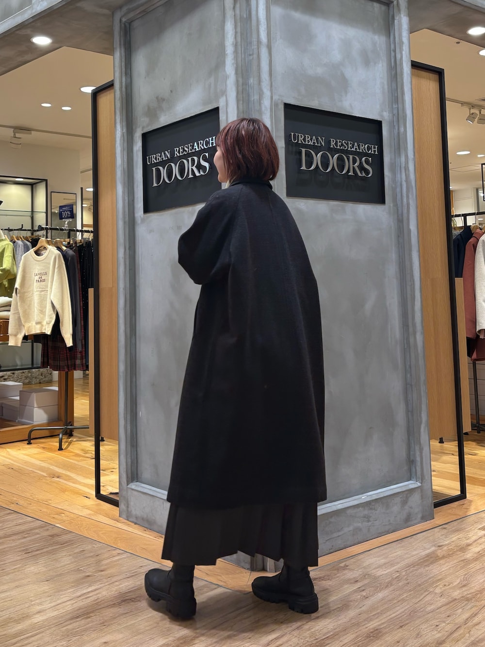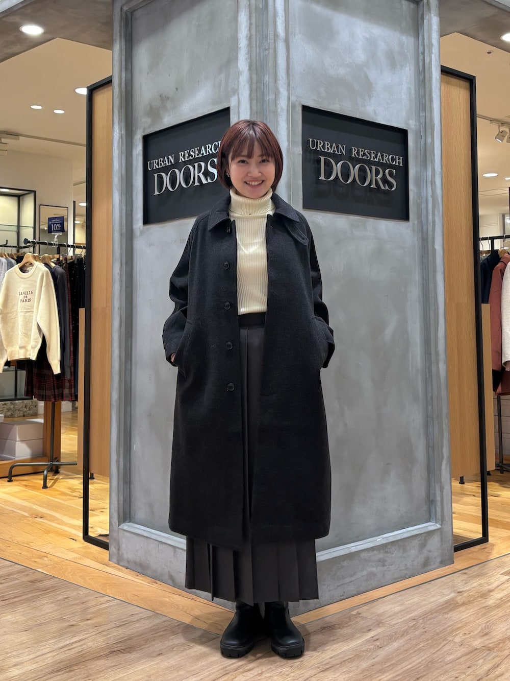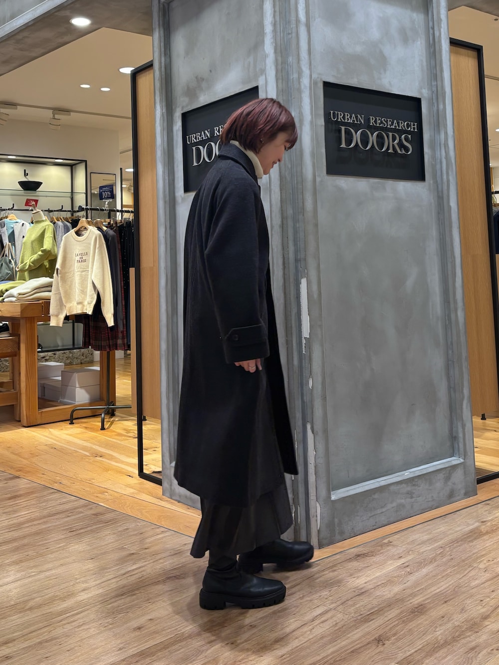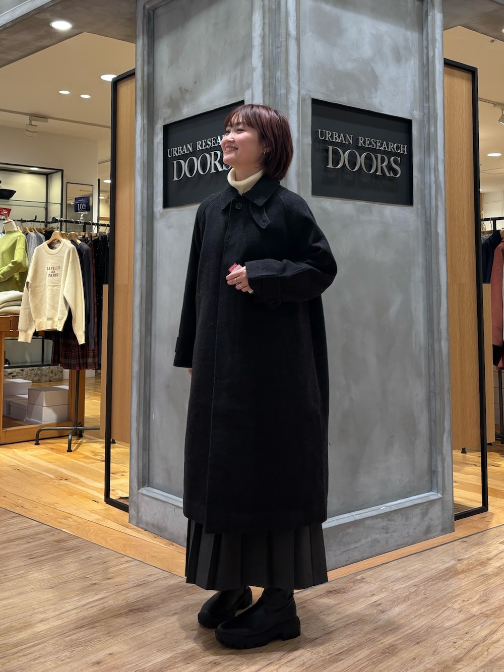 ウール100バルカマーンコート着用しています!ウール100%なのであたたかくそして軽いですよ◎シンプルなデザインなので上品なシルエットになるので、シーンを選ばずに着ていただけます☻
