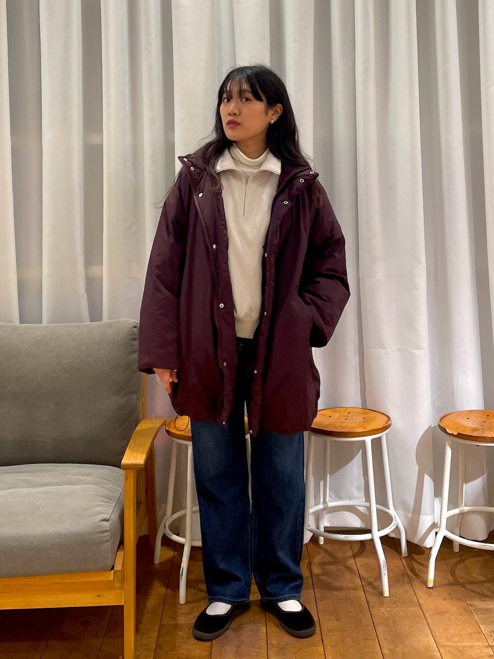 中に今回着たアイボリーを持って来たり、ブラウンやカーキなどでも素敵に着こなせると思います!