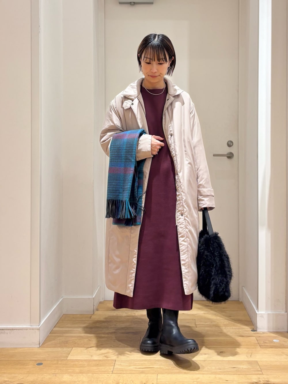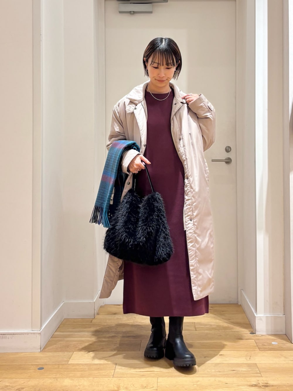 DOORSウールチェックストール- 着用カラー: