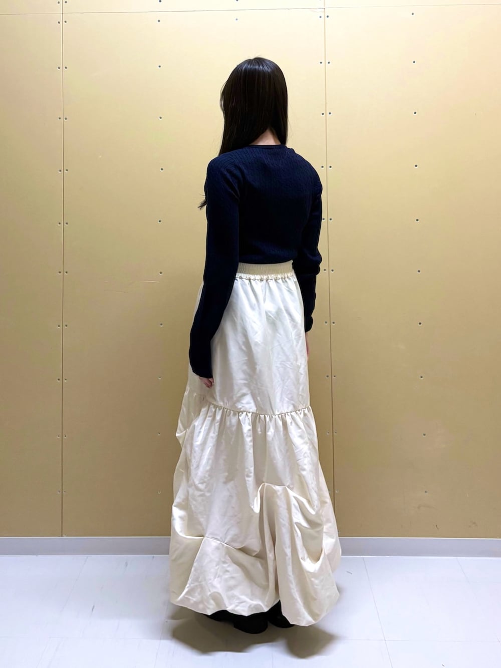 スカートはタックがたくさん入っていてボリュームがあるので、トップスはシンプルめにしてみました🤍