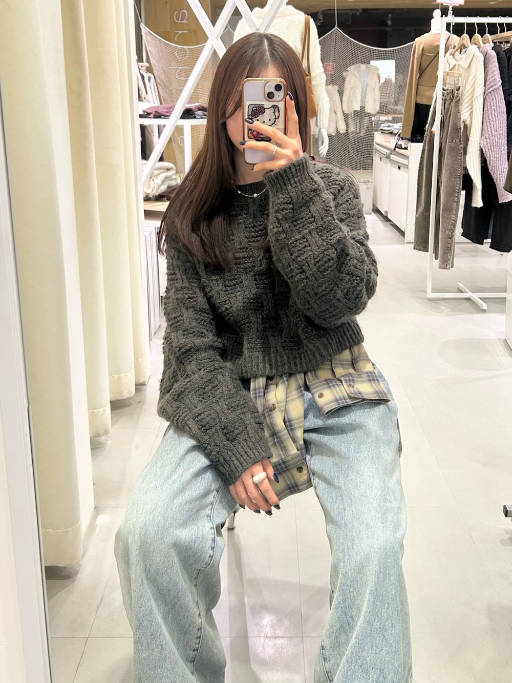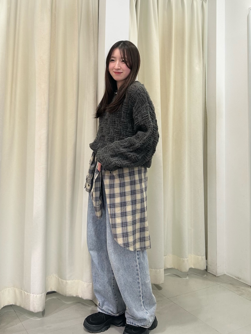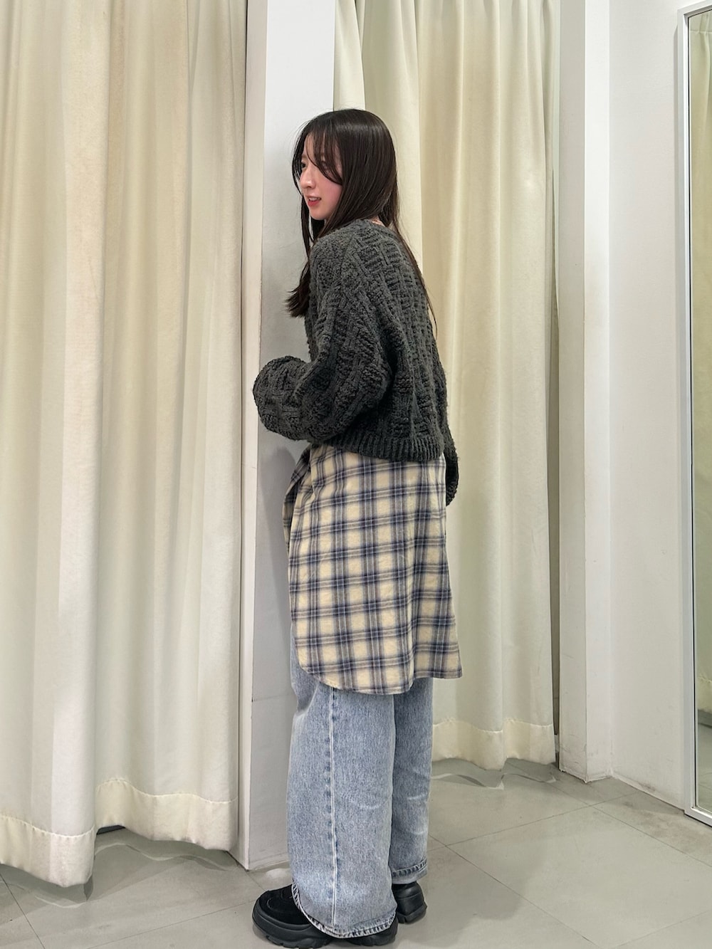 デニムは太めシルエットを合わせて、全体をリラックスしたバランスにまとめました☑️