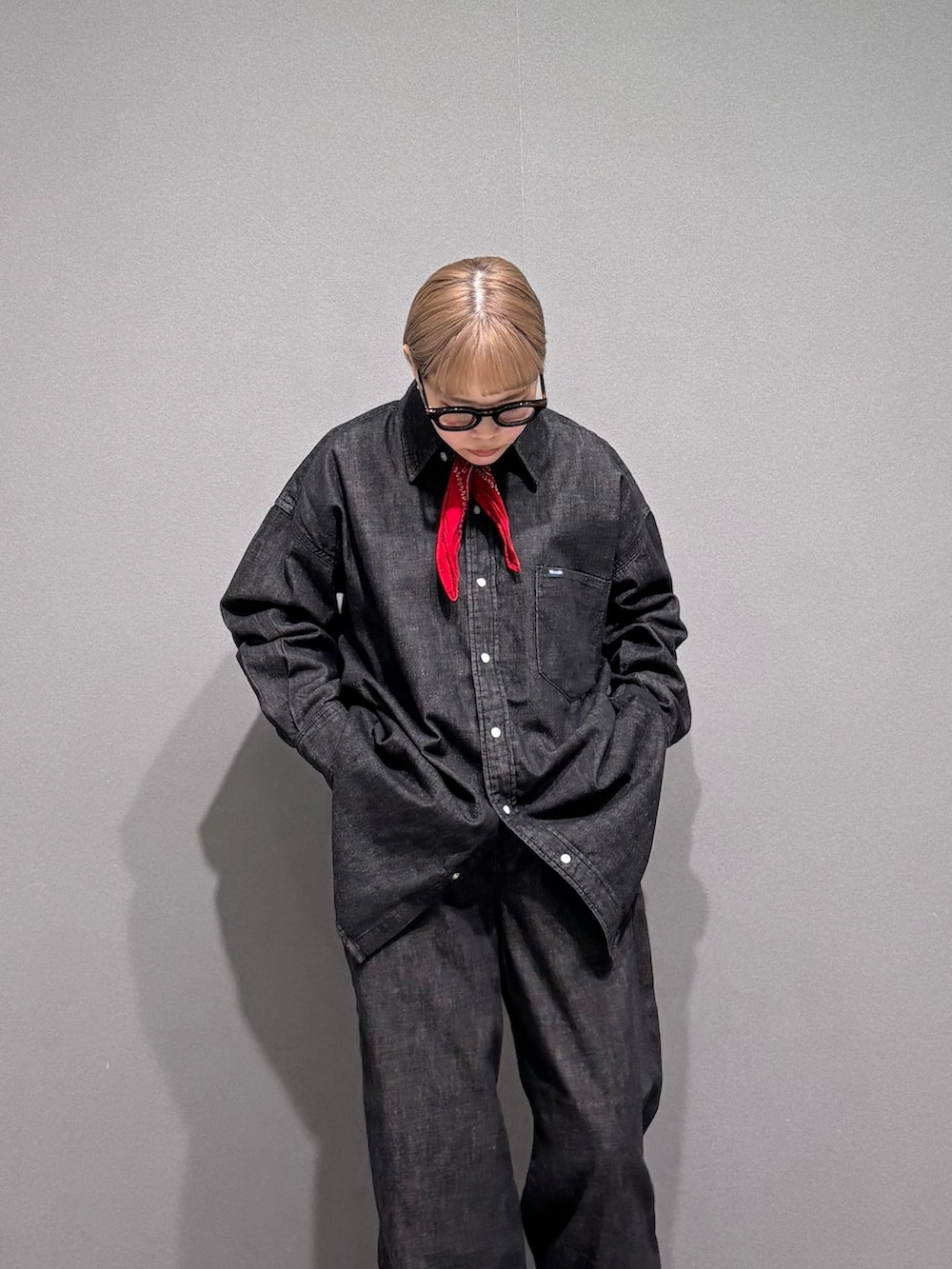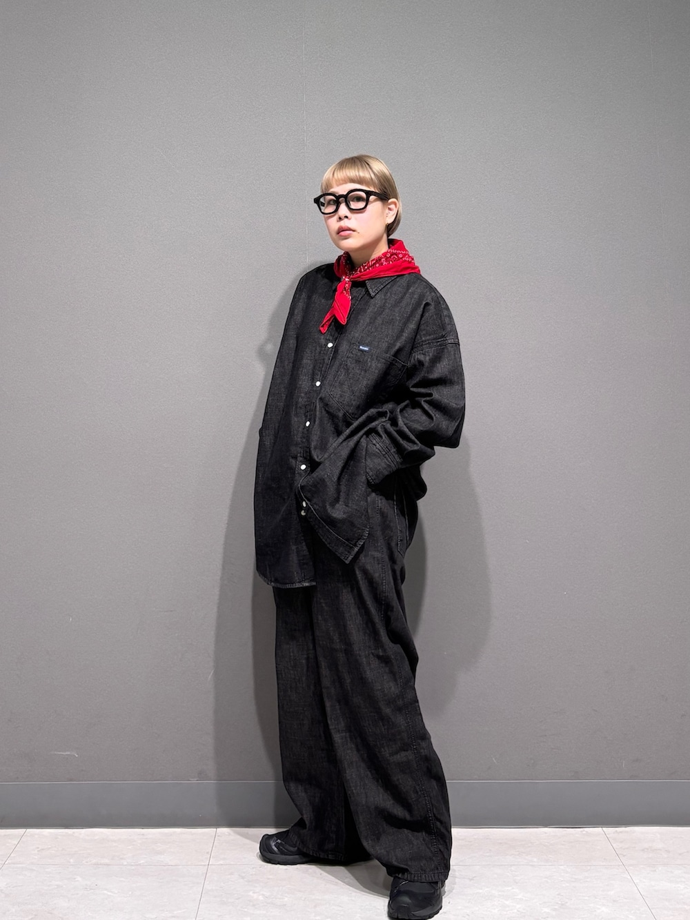 デニムシャツとデニムパンツを