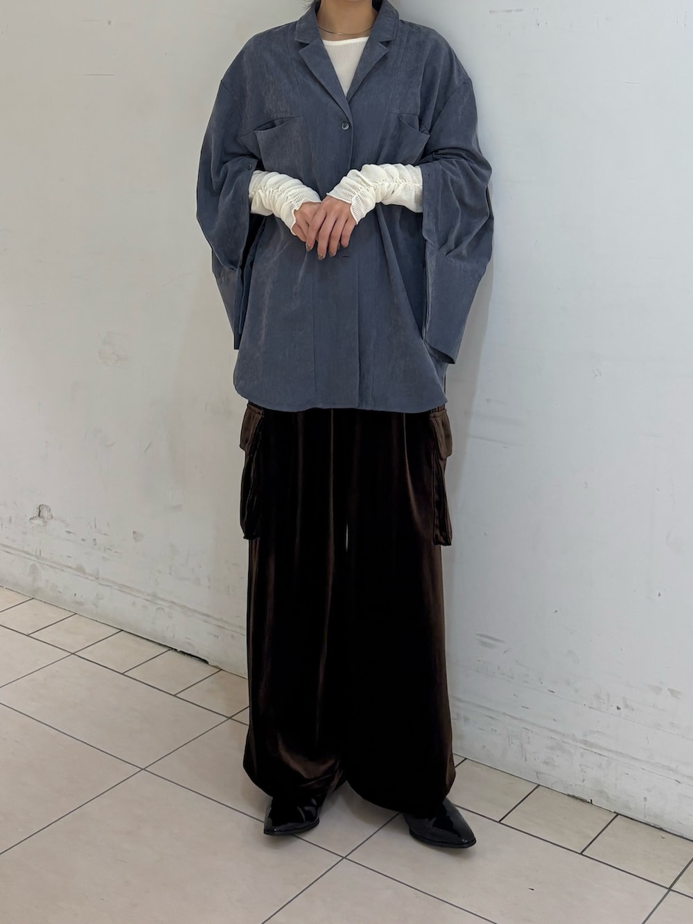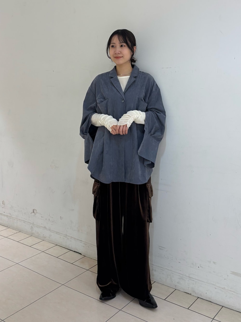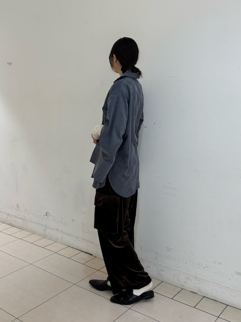 ピーチスキンBIGシャツはお袖が開くデザインなのでカットソーやニットとレイヤードしてお袖からチラッと見せるのが可愛くておすすめです〜✨