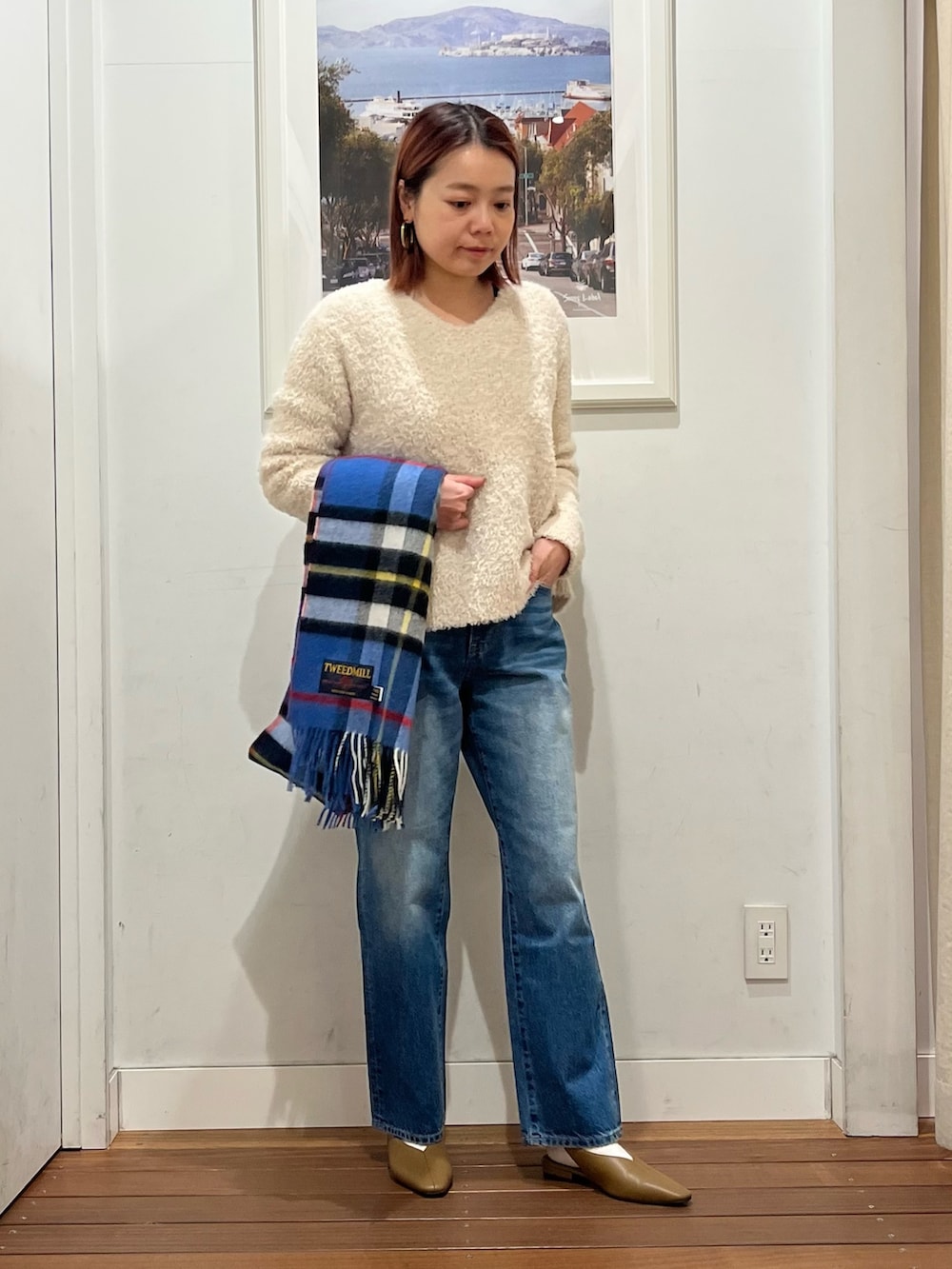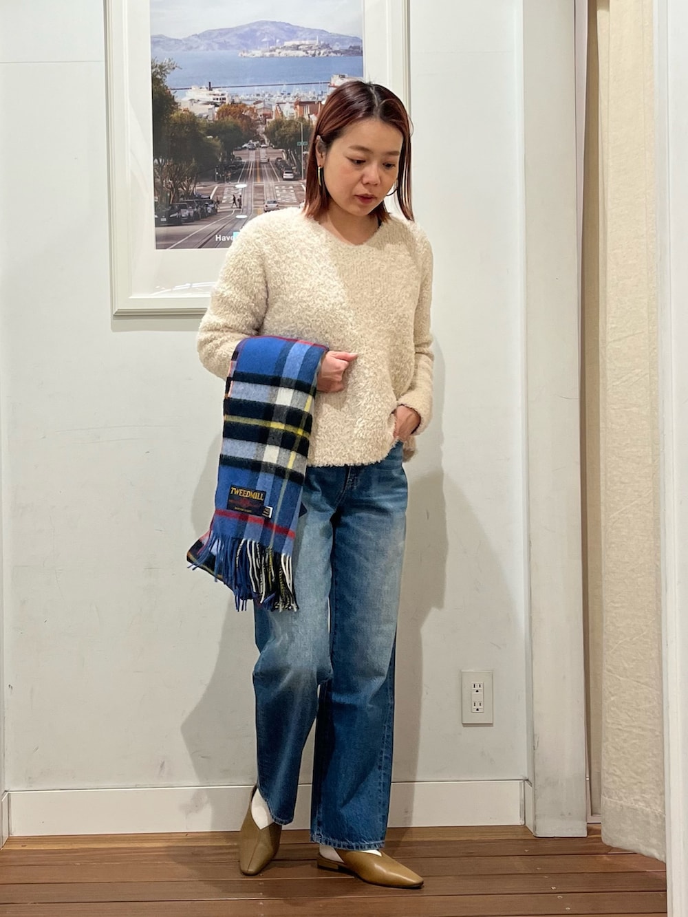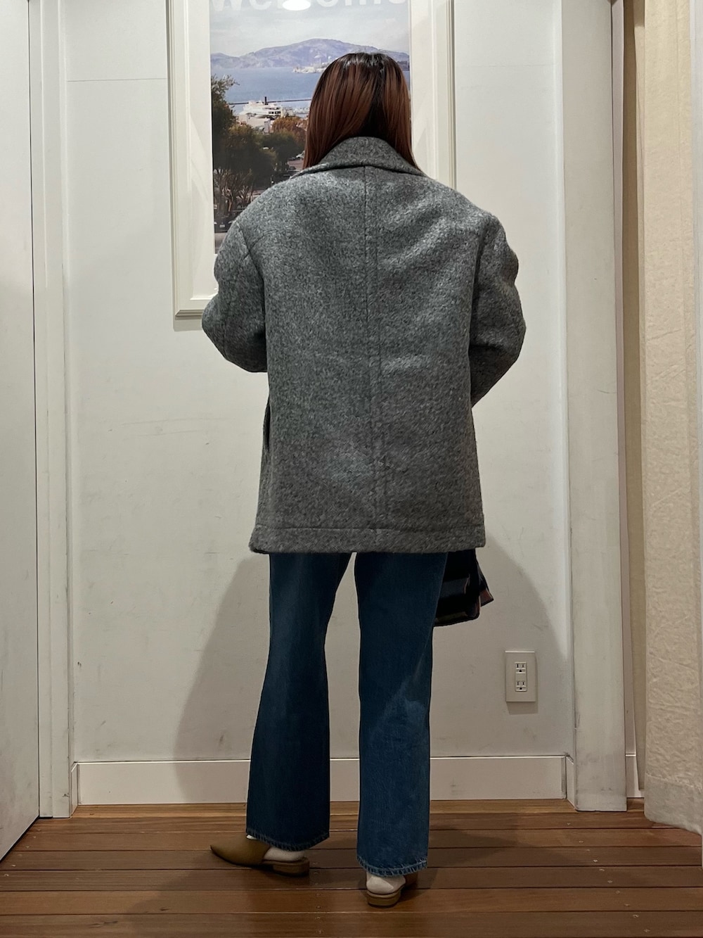 着用のコクーンコートは、シャギー素材になってて、ビックシルエットが今っぽくてかわいいです!