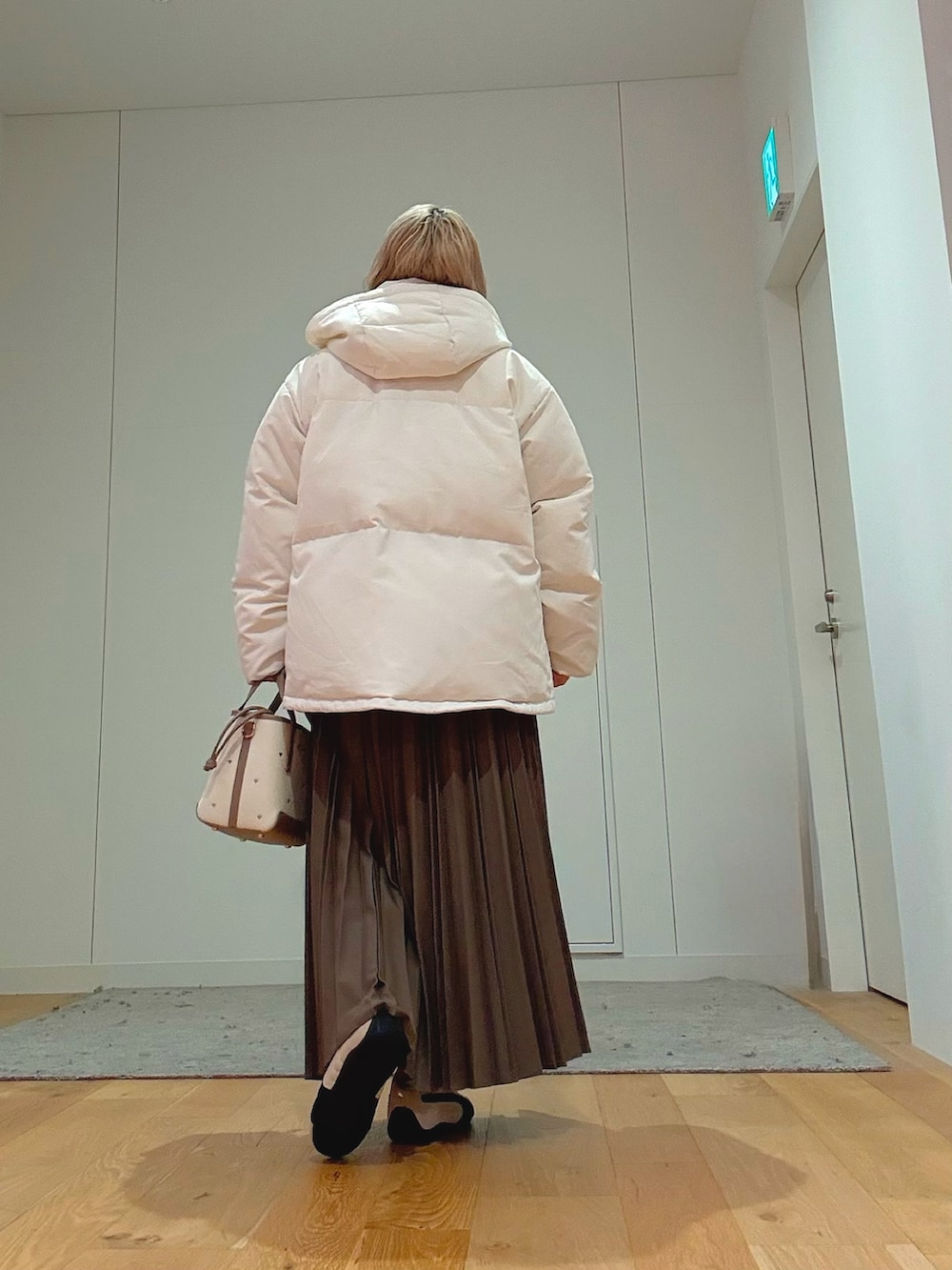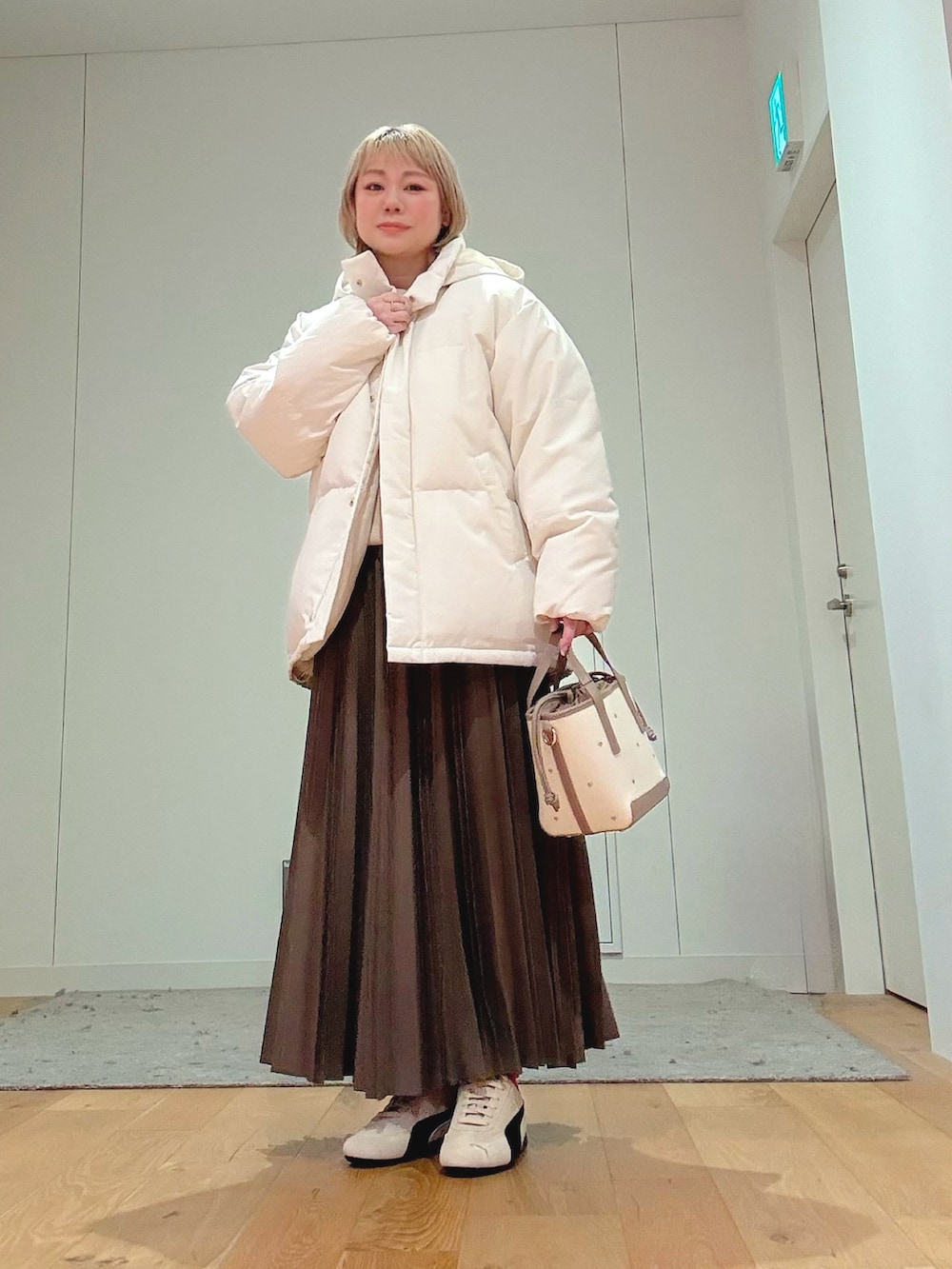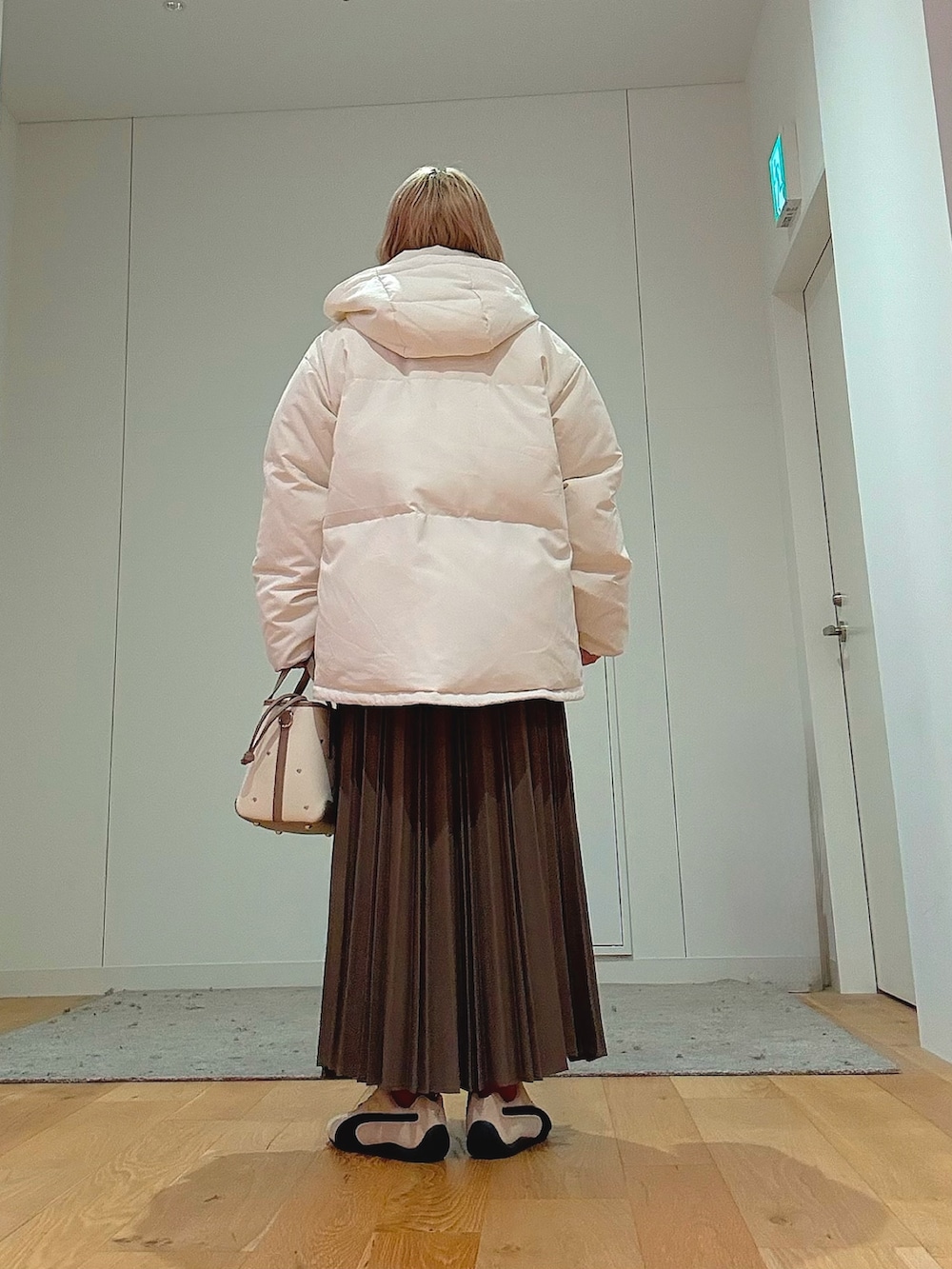 今年人気のホワイト系ダウン!おすすめです!軽くて暖かい、肩が凝らない、こちらのアウターはキレイな白とデザインがキレイめな服にも合わせやすくたくさん使えるアウターなので是非お試しください。