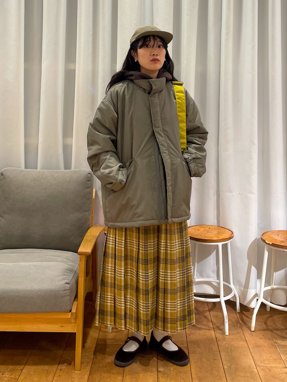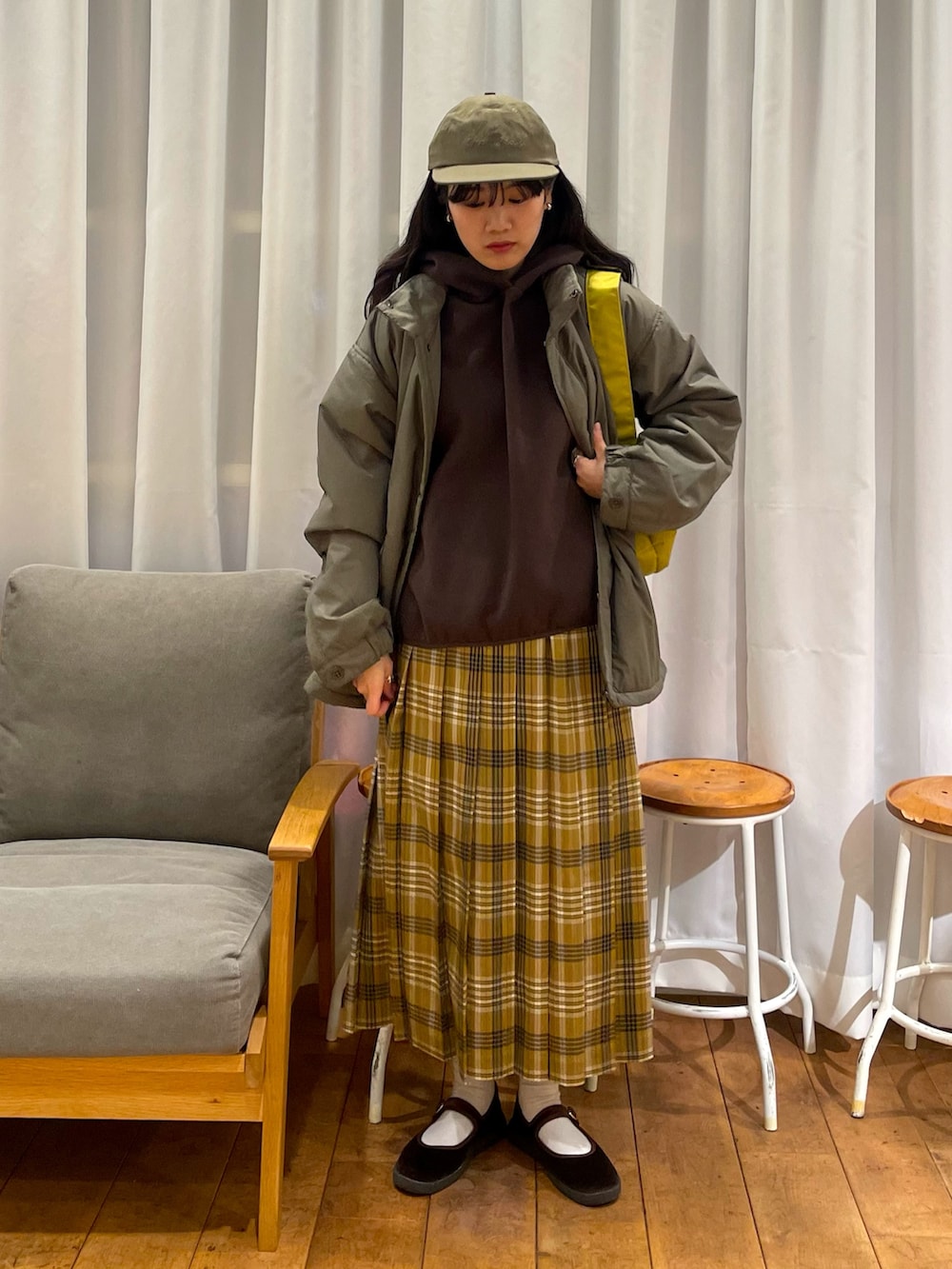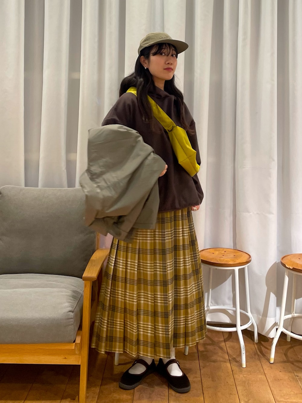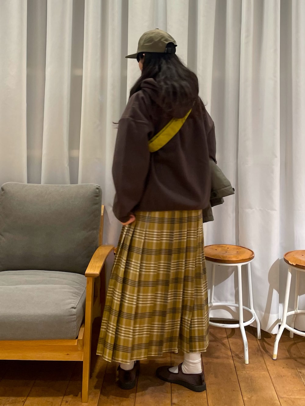 イエローのチェックスカートでメンズすぎないように引き算しました☺️✨