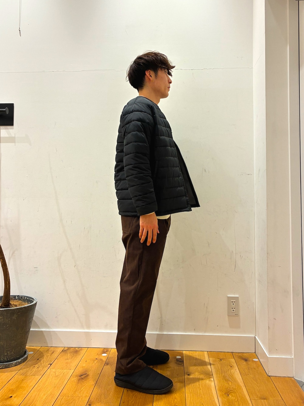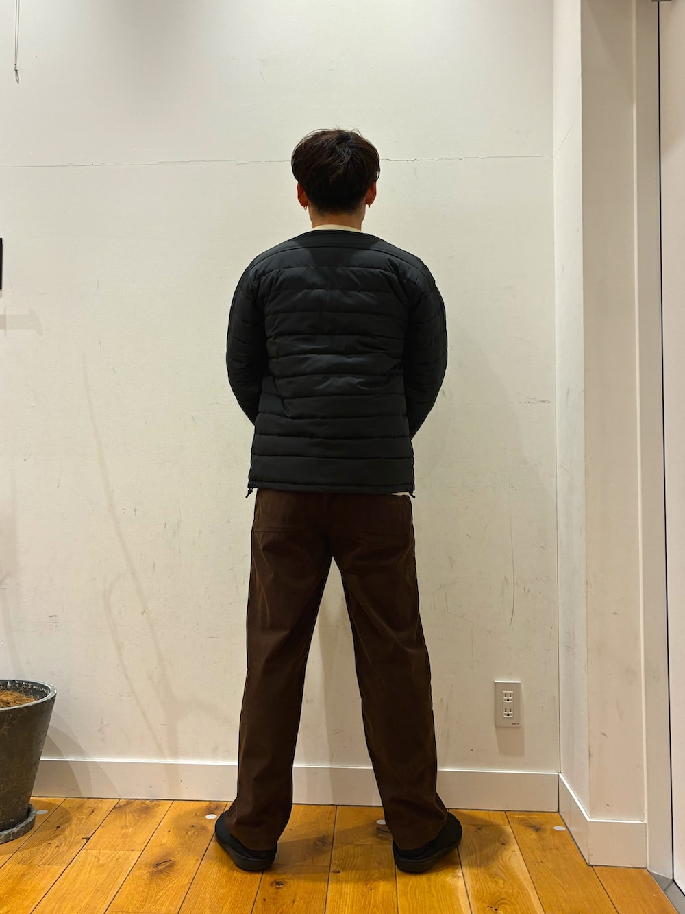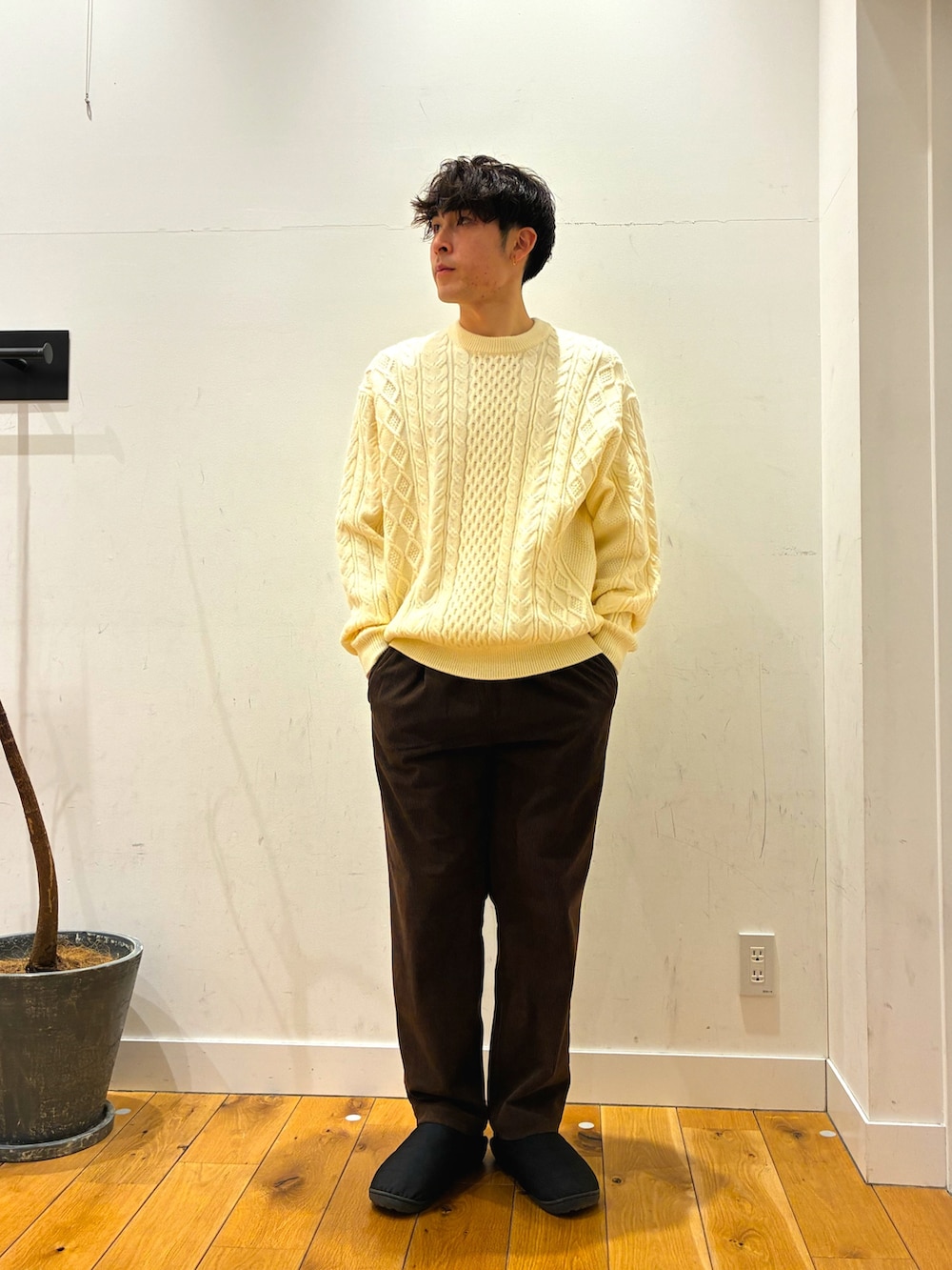 ゆったりとしていて着心地がとても良いニットにキツネのロゴが可愛いthe foxのインナーダウンを着ています!パンツはコーデュロイ生地になっています!