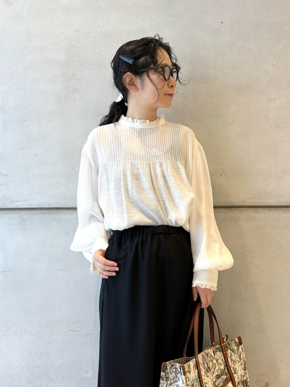 ▶︎DOORS ピンタックフリルスタンドカラーブラウス