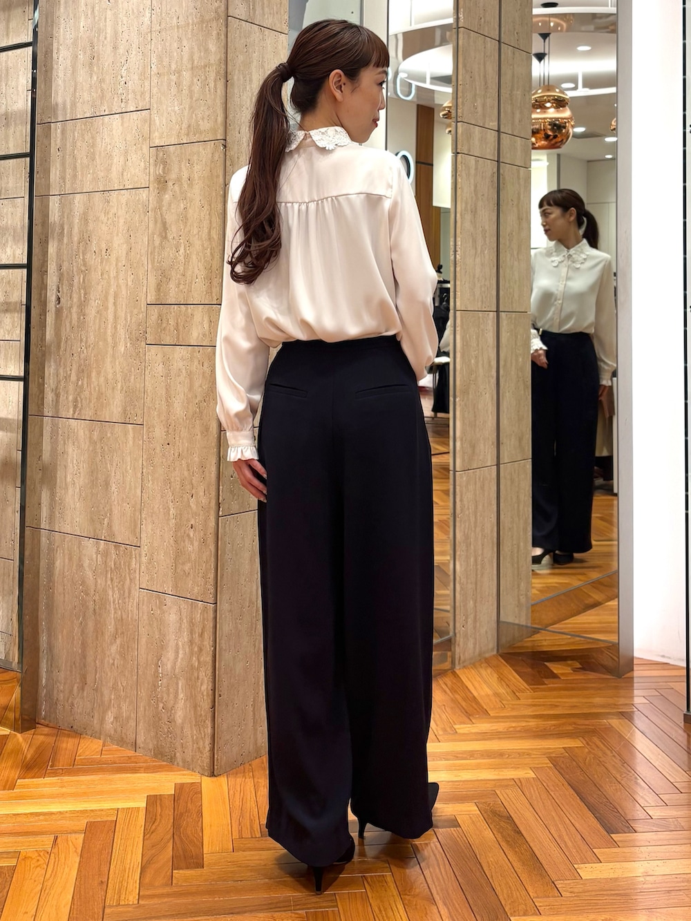ROSSOのトリアセテート混パンツも
