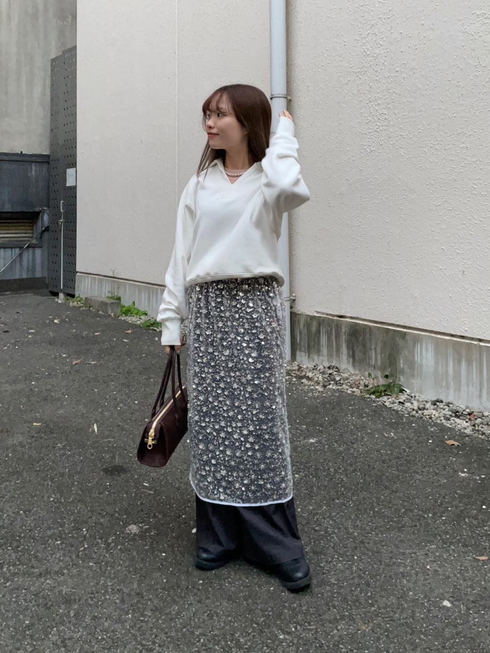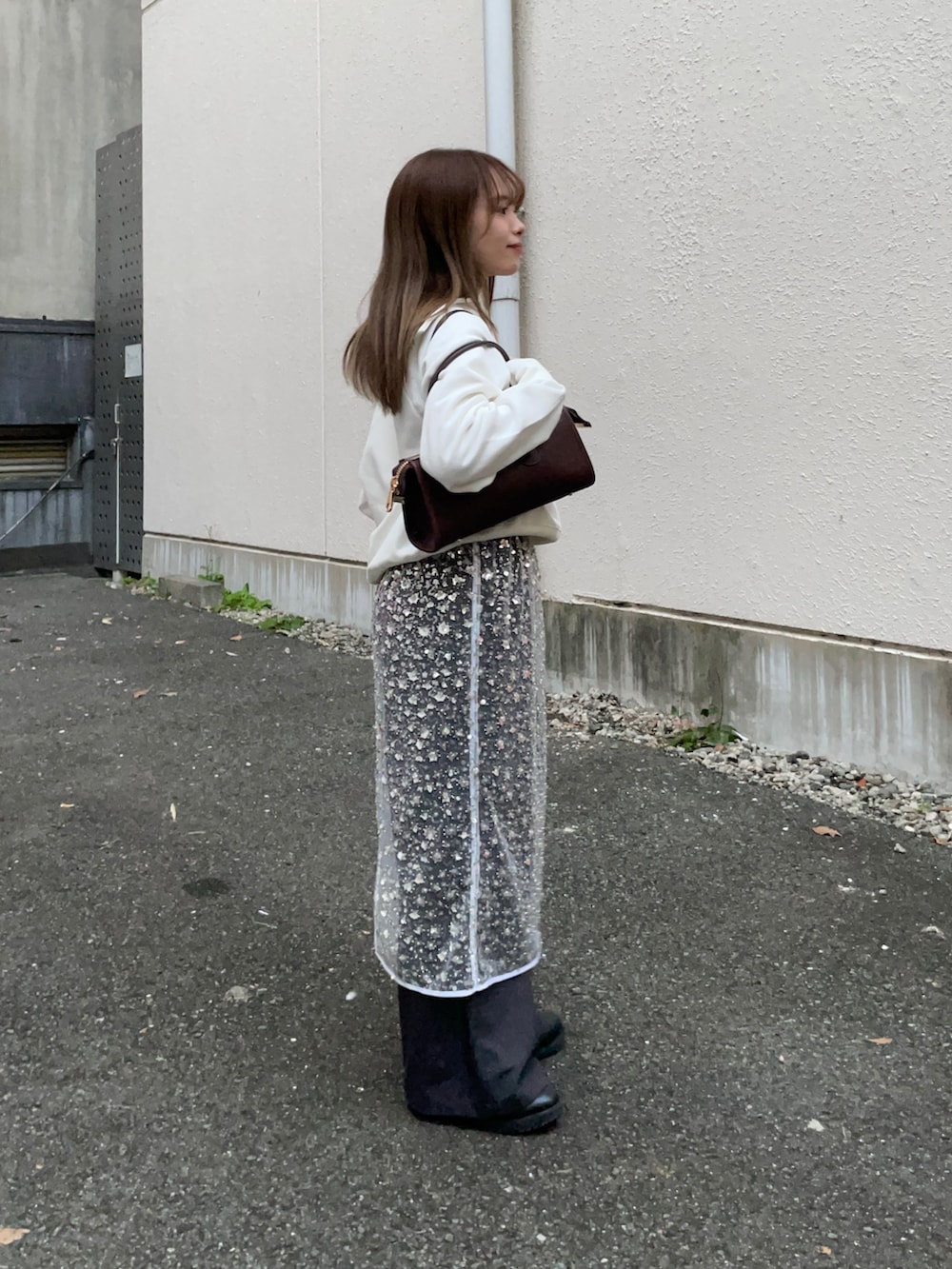 シアーで、デザインも花の形をしたスパンコールが付いており、とっても可愛いレイヤードスカートです!着丈も低身長にもちょうど良い長さで、一気にコーデを華やかにしてくれます✨