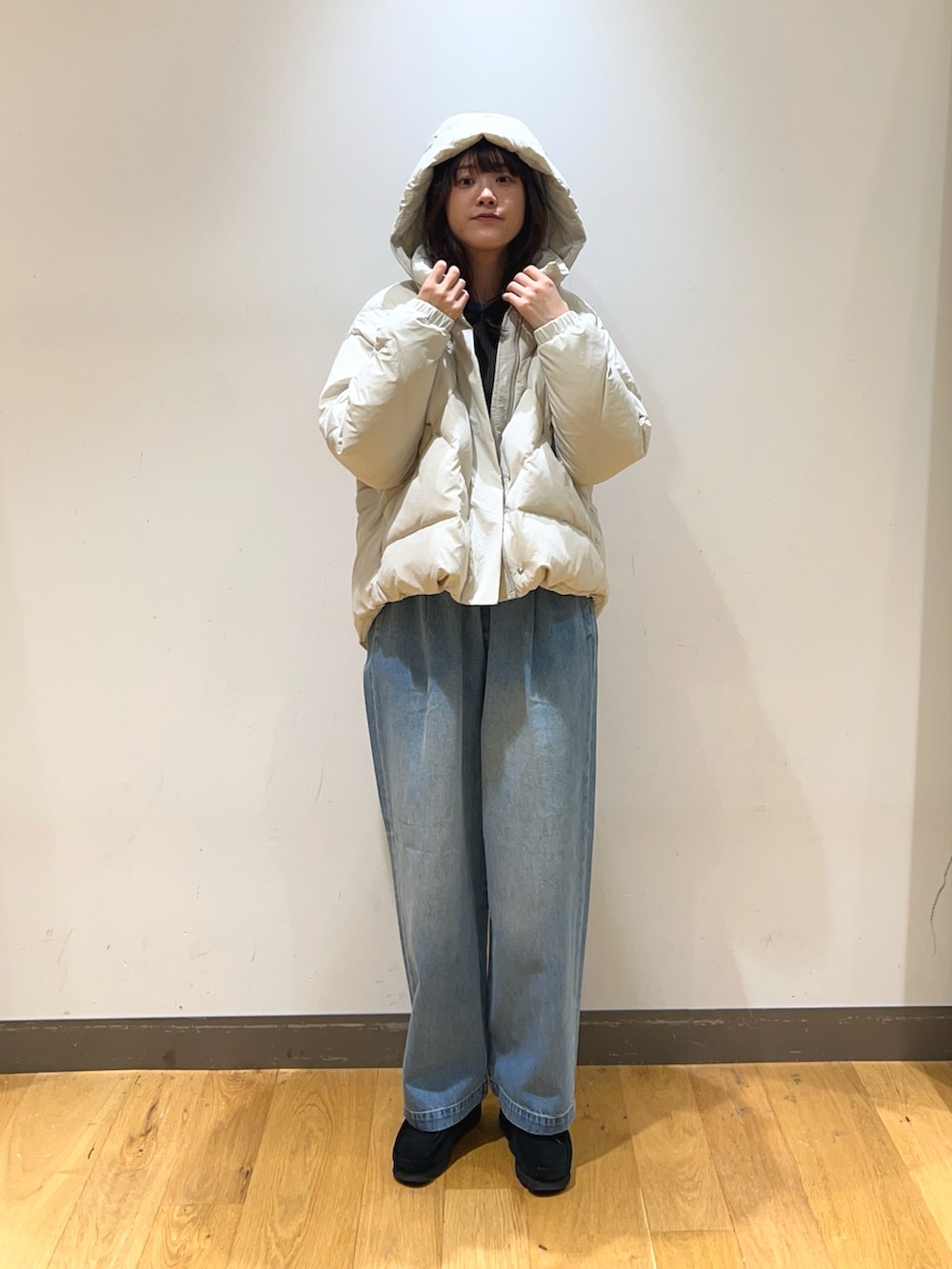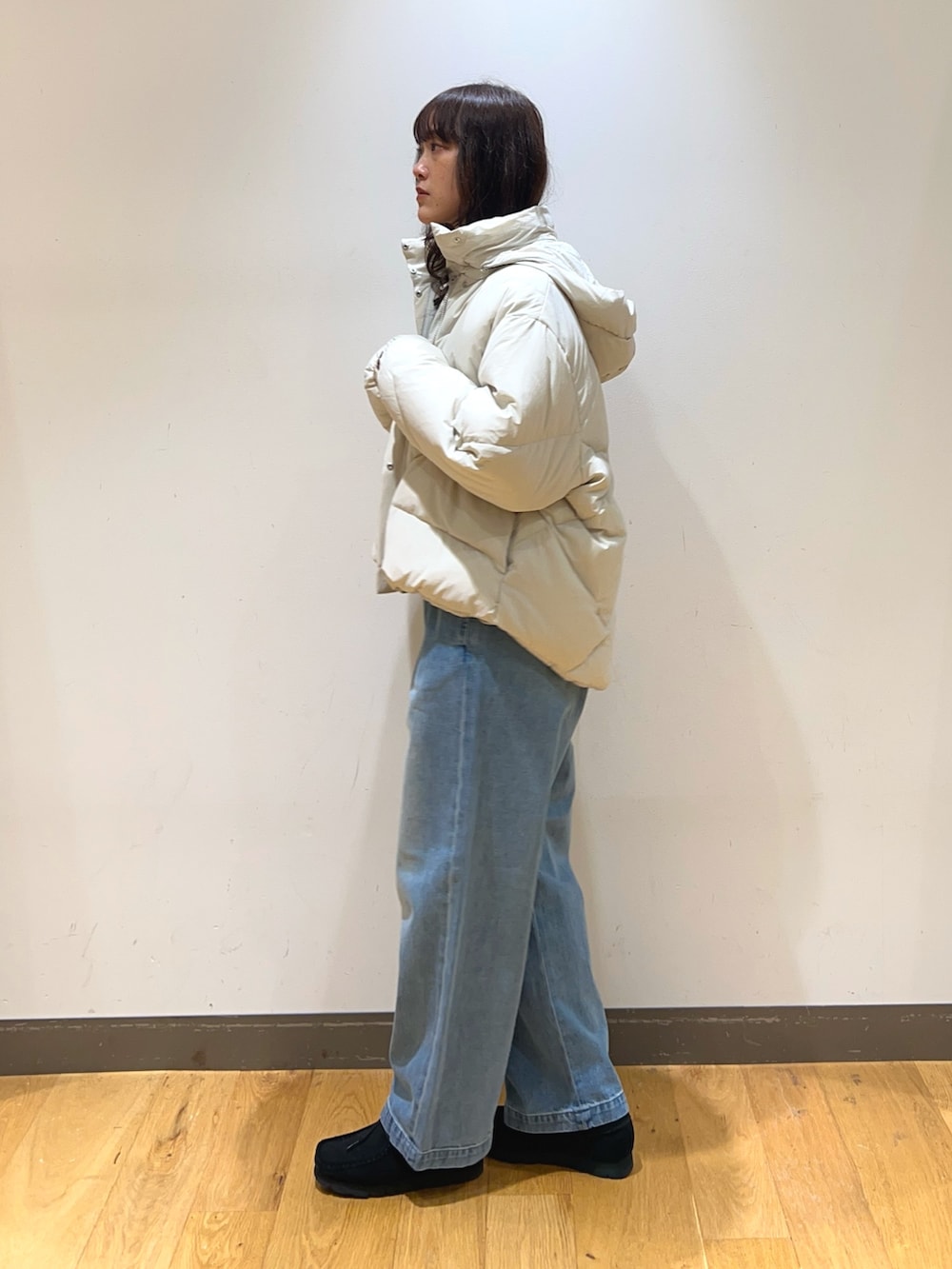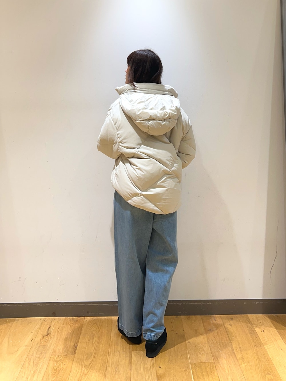 撥水加工の真っ白ダウン!年明けは明るいアウターで気分をあげたいです^_^ 軽量であたたかく、横から見たシルエットも女性らしい印象に◎デイリー使いしやすいアイテムです!
