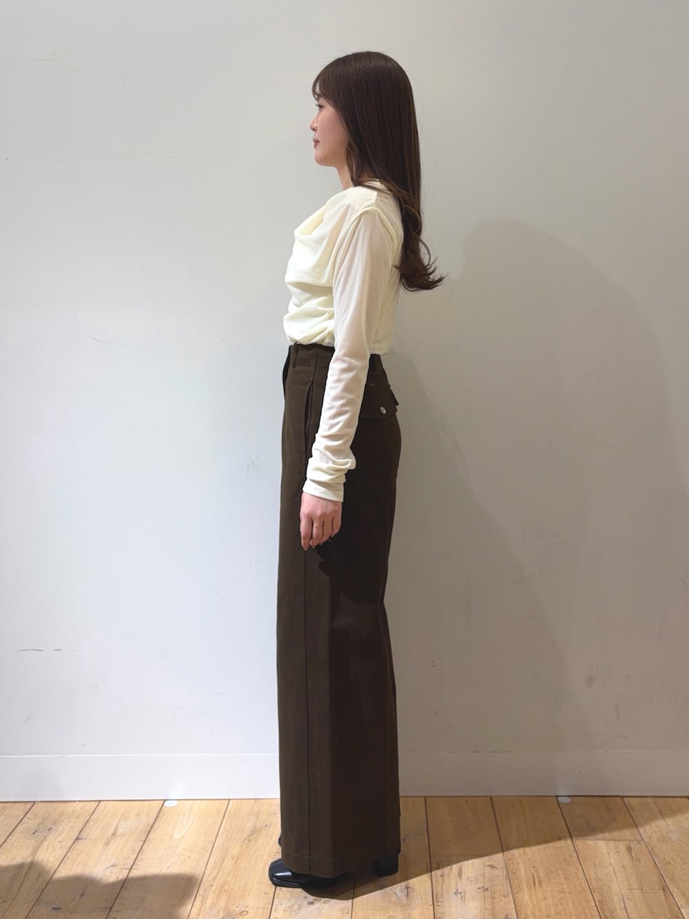ボトムスはブラウンのワイドパンツで合わせて大人コーデにしてみました!