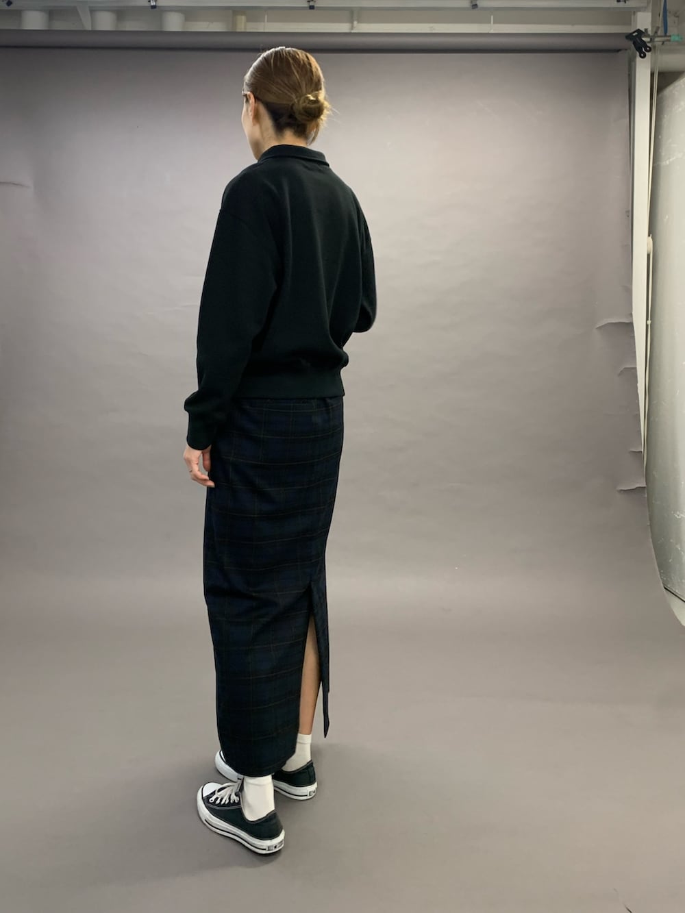 ボトムのスカートも、ストレートでスッキリとまとめたコーディネートです。