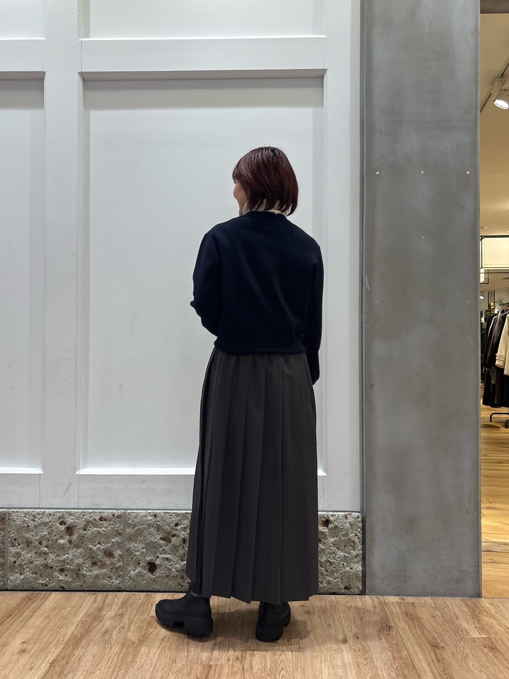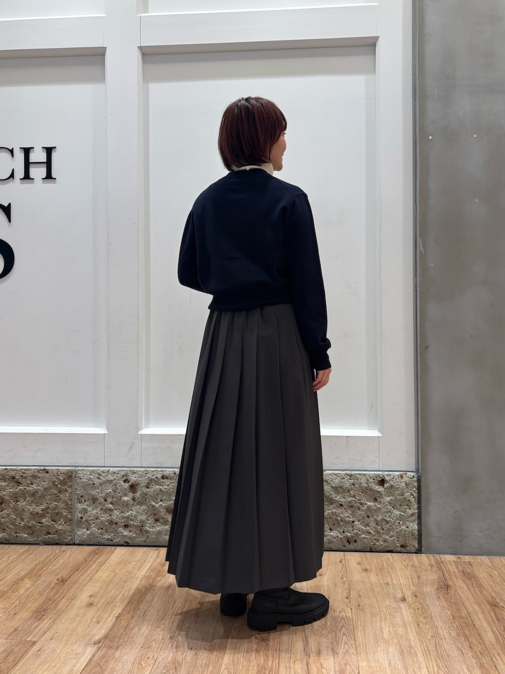オフィスカジュアルを意識したコーデを組んでみました。プリーツスカートはシワになりにくいのでお仕事用におすすめですよ!