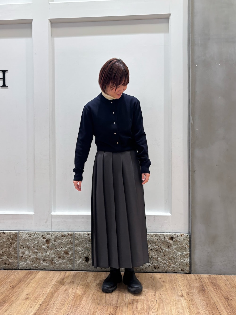 カーディガンは前開きになっているのであたたかくなってきたときにはシャツ合わせで羽織りとしても使えますよ◎