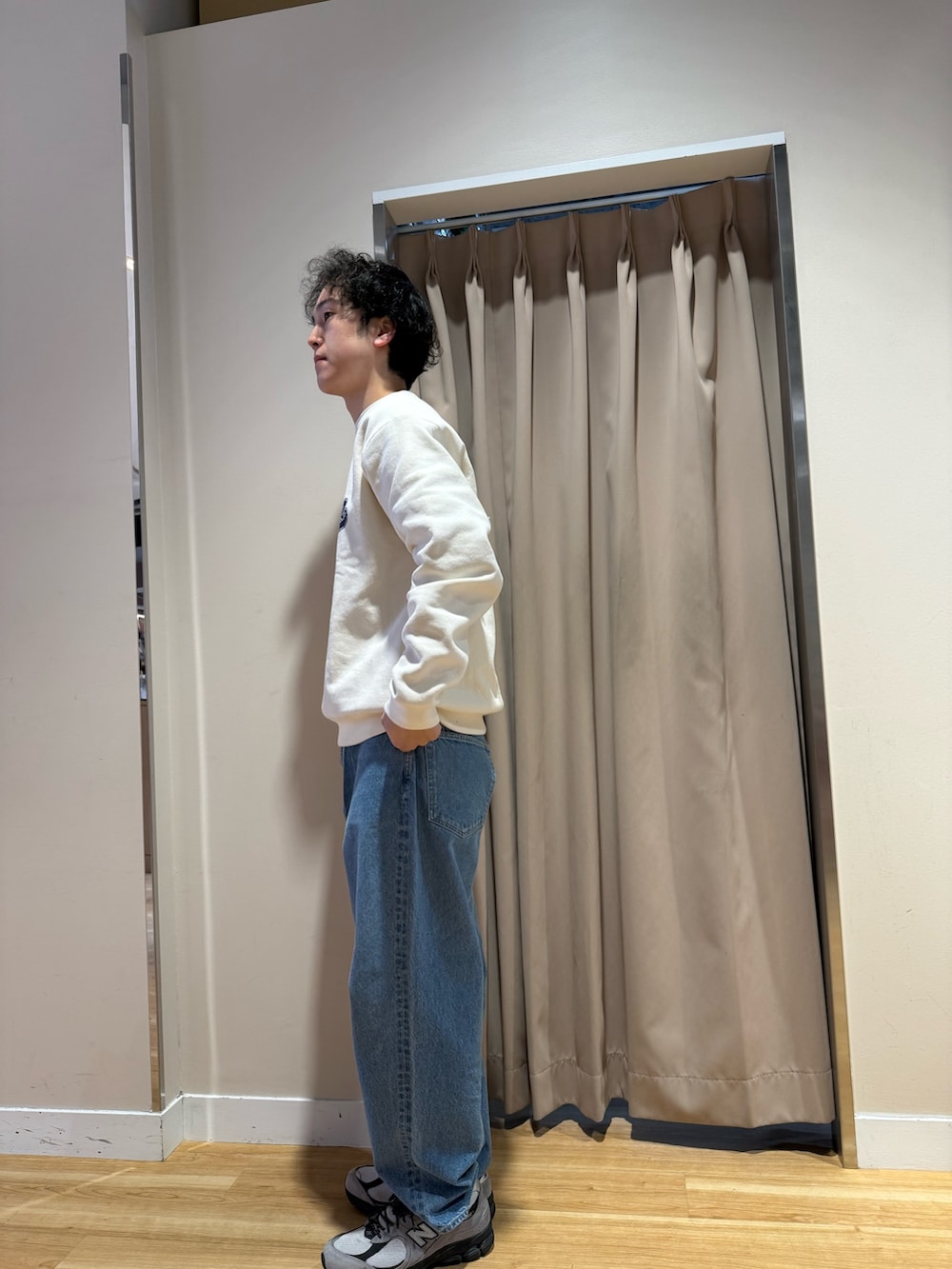 ヴィンテージライクなスウェットにデニム合わせのカジュアルスタイルです!