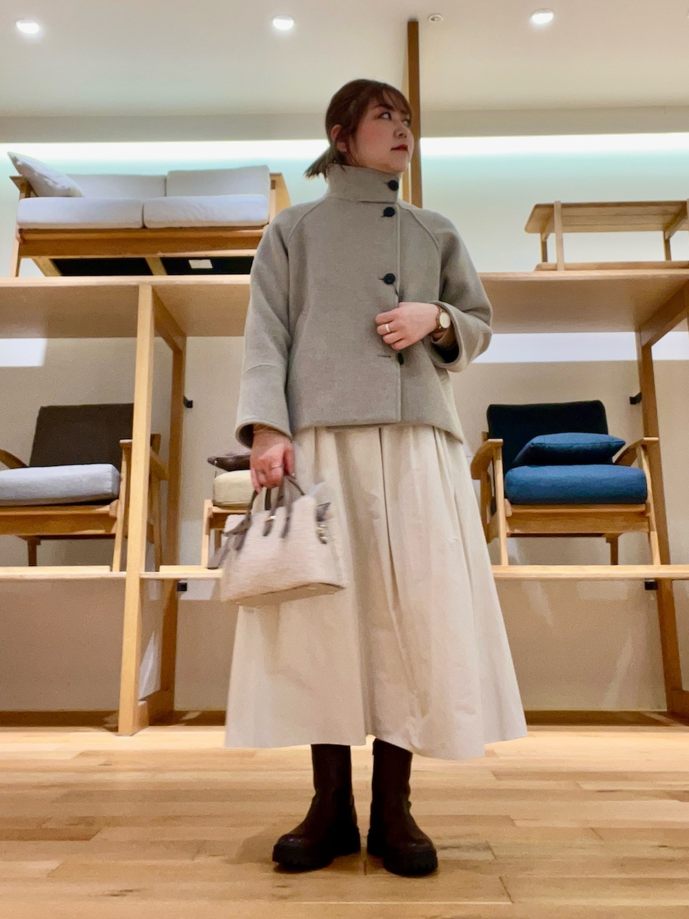 コンパクト目なのでボリュームスカートと合わせカジュアルに‼︎