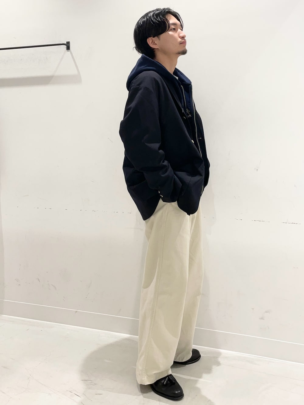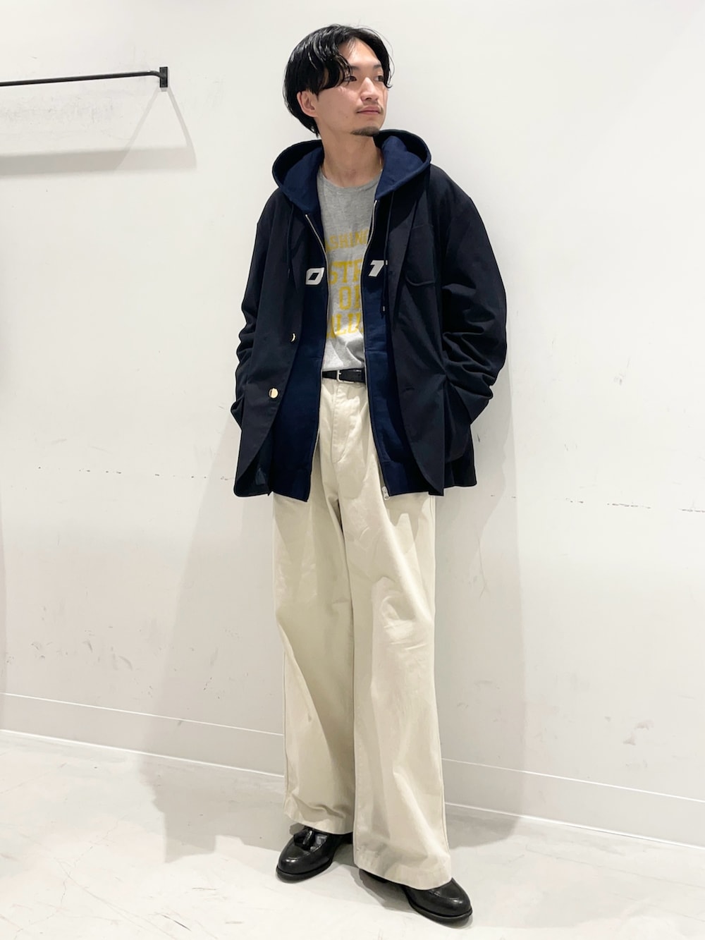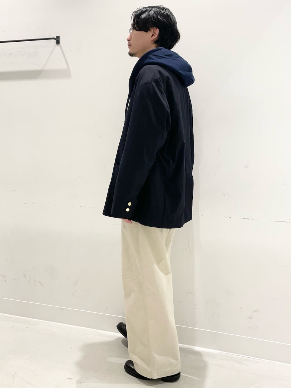 柔らかいシルエットのジャケットにパーカーを合わせて雰囲気そのままにコーディネートしてみました!