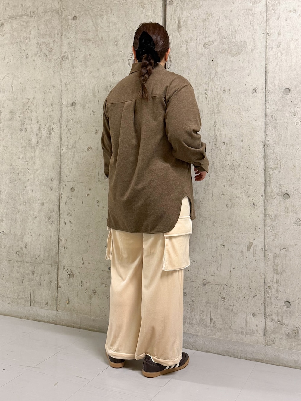 シャツはウールが入っているので暖かく、サイズも程よいオーバーサイズ感で着やすいです!