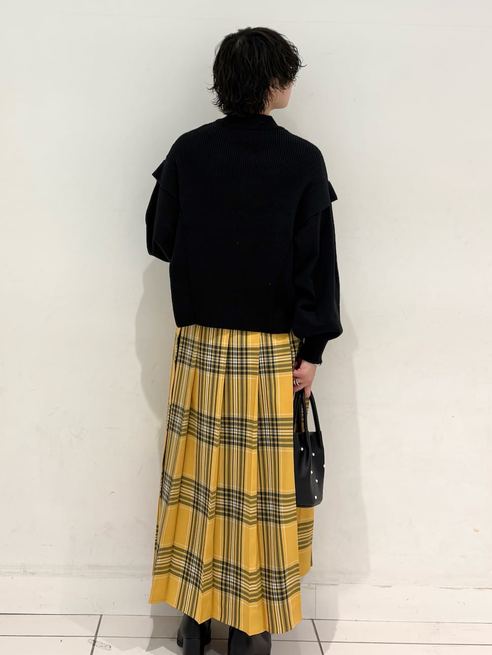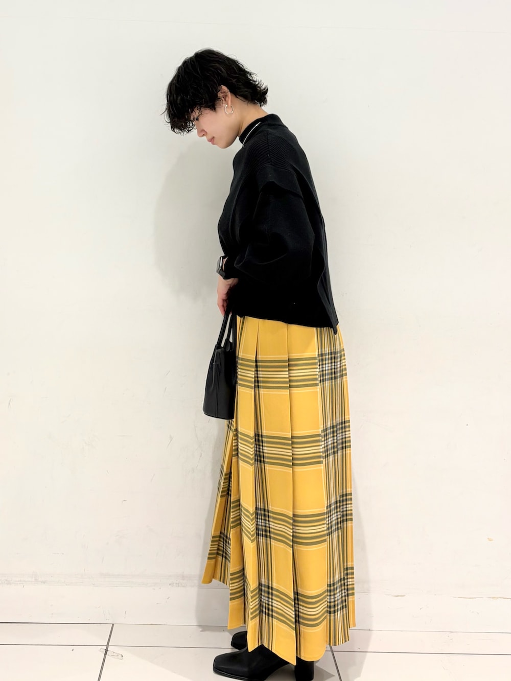 去年から人気なデザインニットにチェックデザインが特徴的なスカートを合わせてみました😎