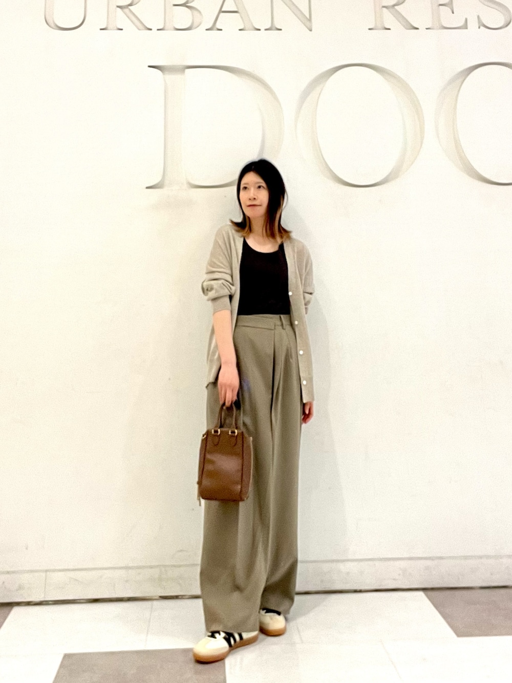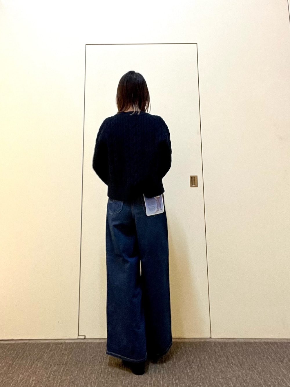 トップスのVネックカーディガンはケーブル編みになっていてシンプルな合わせでも映えます◎Vネックにコンパクトな着丈なのですっきりと着れます!シャツやカットソーをレイヤードするのもおすすめです🧶