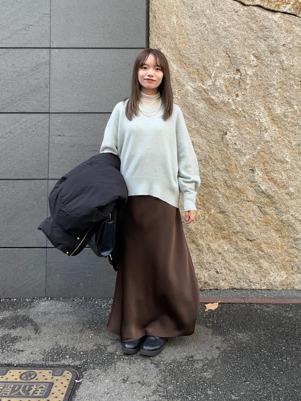 スカートは光沢のある高級感満載のサテンスカートです!シルエットはIラインで、ウエストはゴム紐で調節でき、透け感もありません!キレイめとしてはもちろん、カジュアルにスニーカー合わせもバランスが取れてオススメです✨