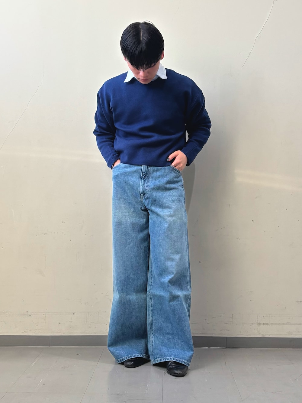 今回のパンツは、インライン101 100thの形をベースに仕上げたバギーパンツ。裾に向かって緩やかに広がるワイドシルエットがスタイルアップ効果を発揮します。以前の投稿でも紹介しましたがスタイルが良く見えるシルエットは魅力的だと思います!