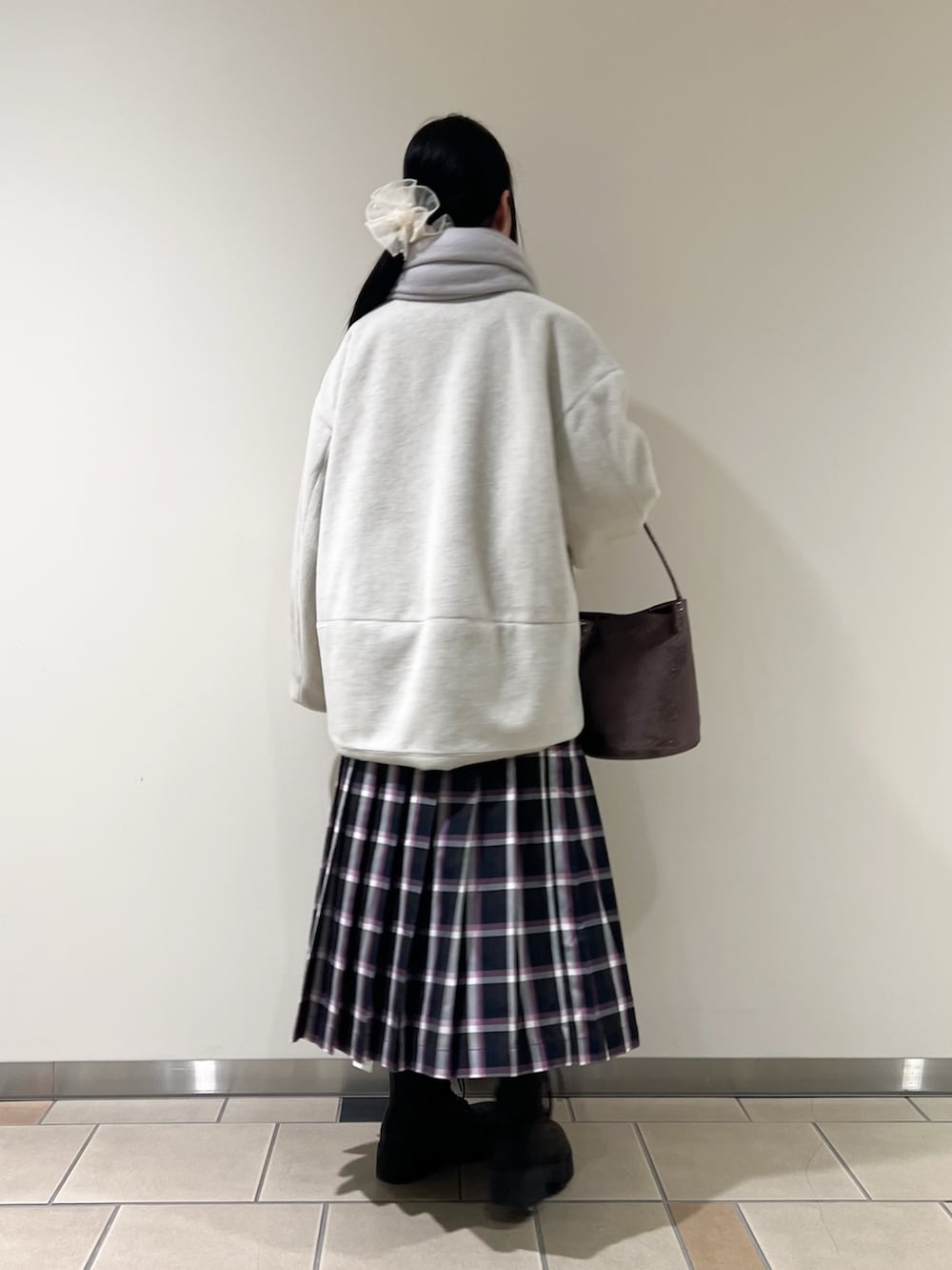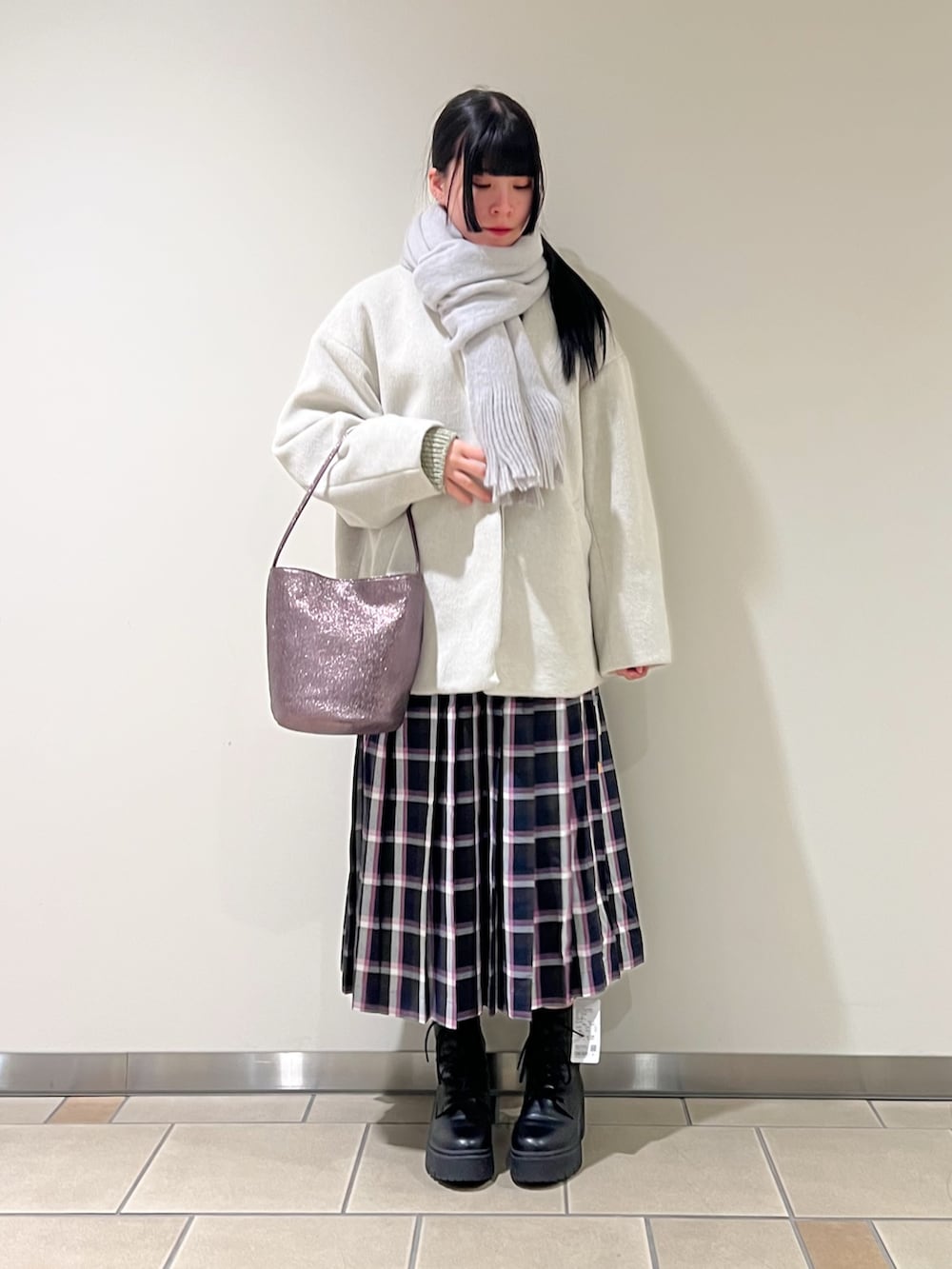 首元はすっきりしてるのでマフラーなどの小物やハイネックのトップスがとても映ます!!