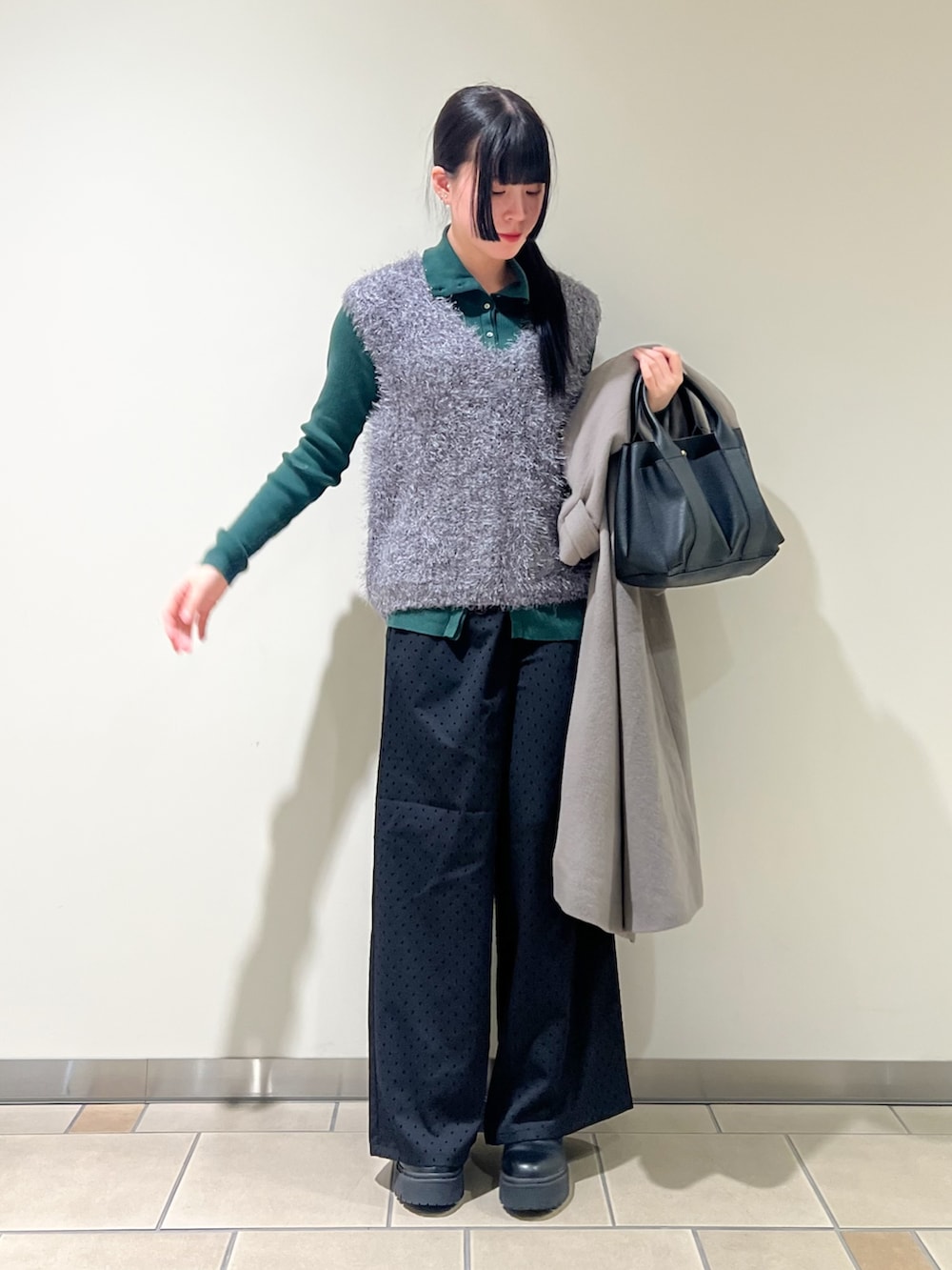 ニットベストはVネックでどんなアイテムともすっきり見えして良いです!