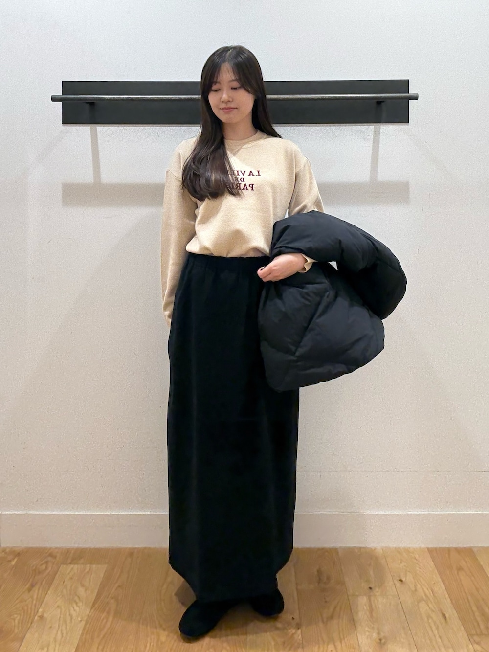 インナーに優しい色味のトップスを仕込むことで、重くなりがちなブラックコーデに程よい抜け感をプラスしました🥺