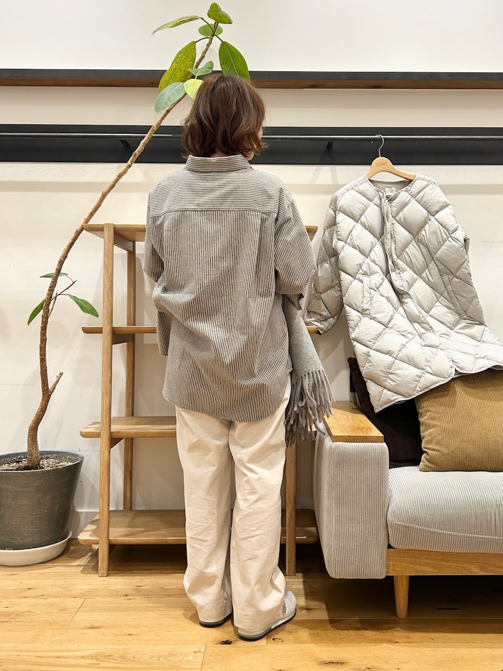 きちんと見えしがちなシャツですが、これは起毛のおたたかい雰囲気もありほどよく力の抜けた雰囲気。