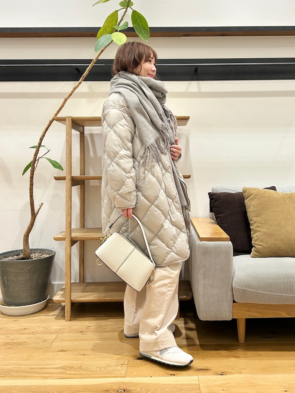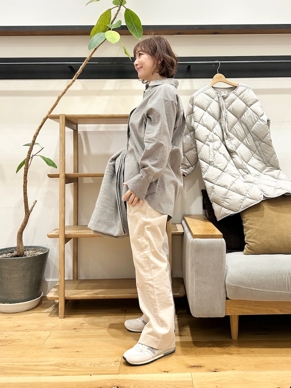 すっきり見えるシルエットなのに、中に着込めるのが嬉しいポイントです。