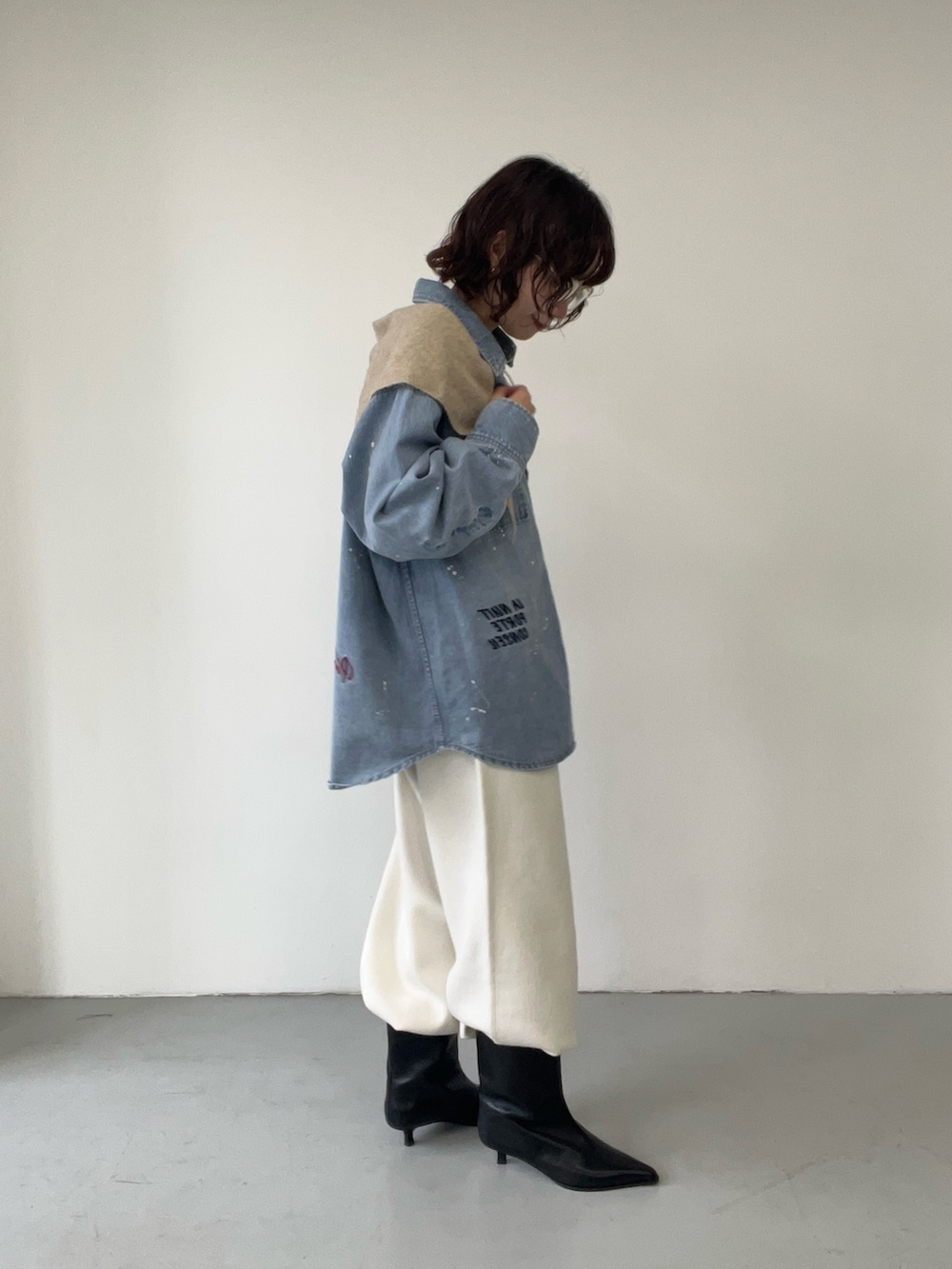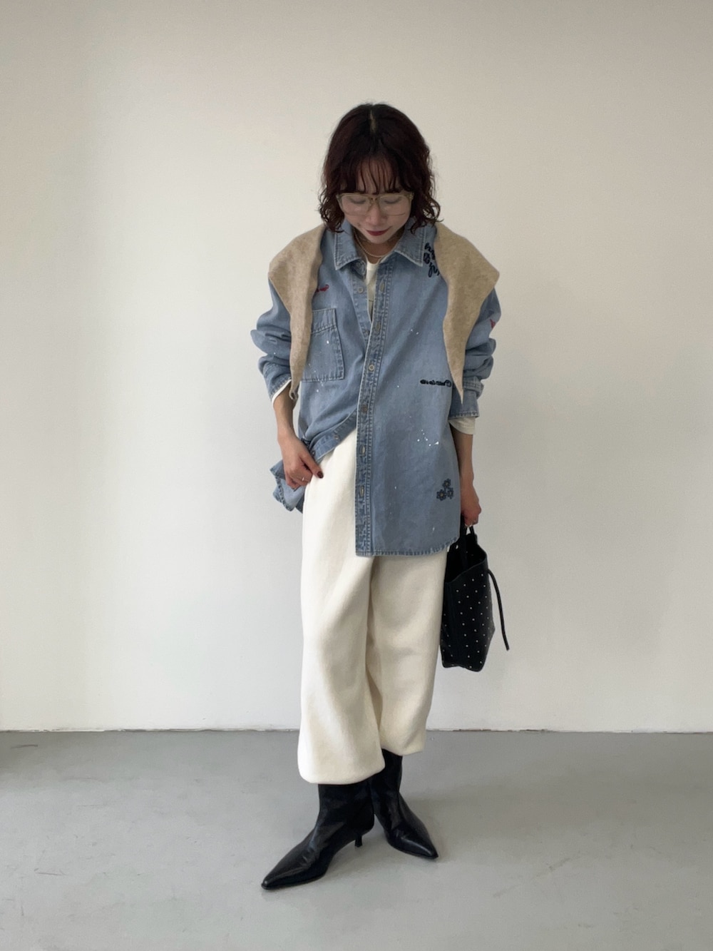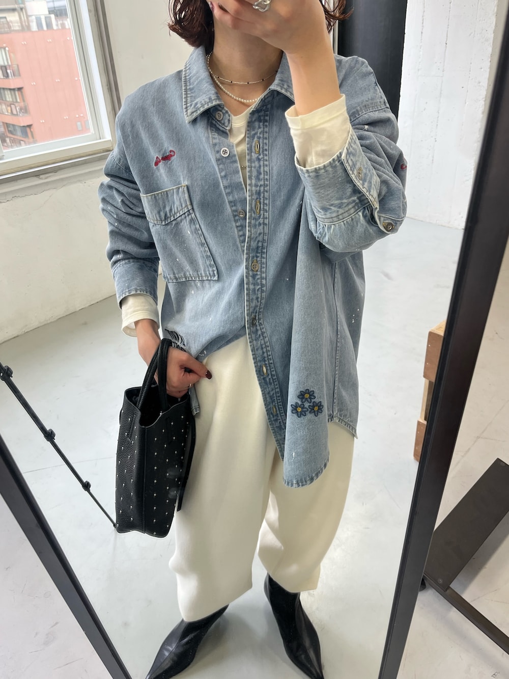 同シリーズのデニム刺繍パンツとのセットアップスタイルもおすすめなアイテムです💡