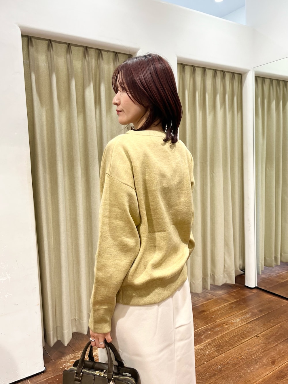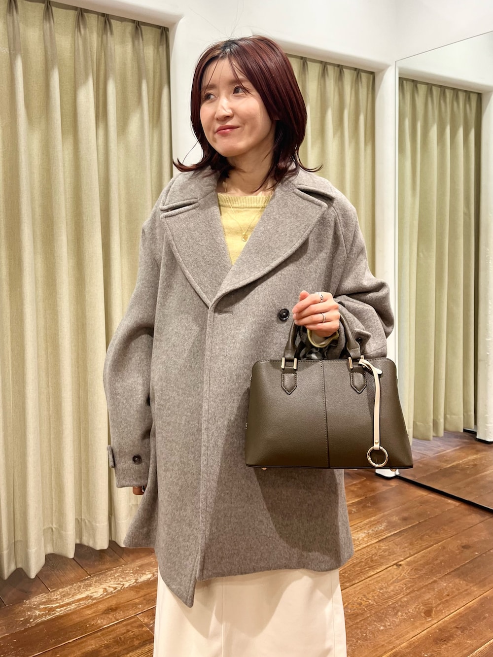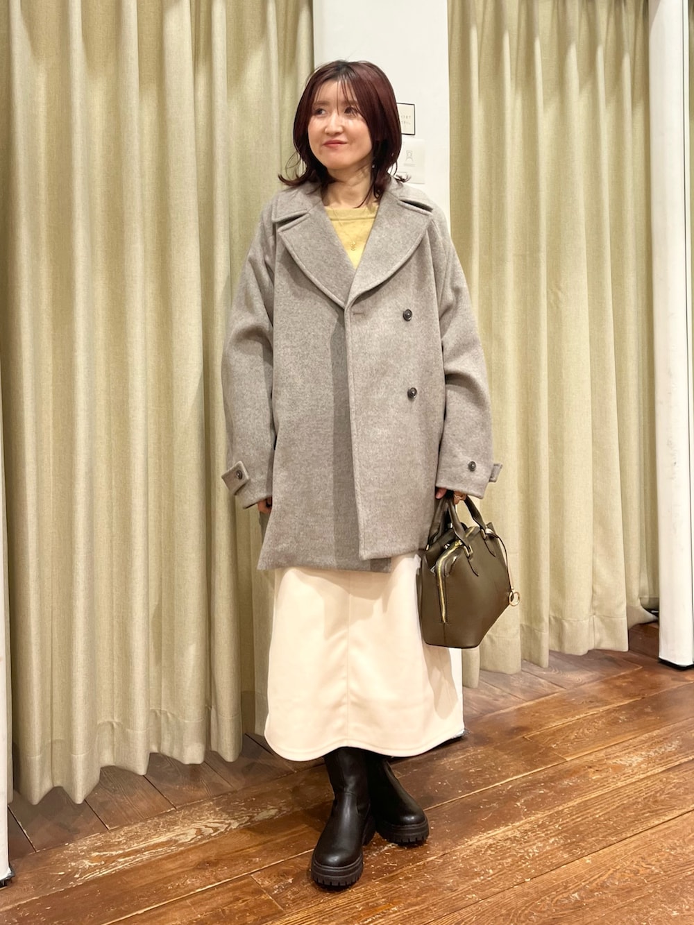 スカートはしっかりしたメルトン素材で着丈も長過ぎないので小柄な方にもおすすめです◎
