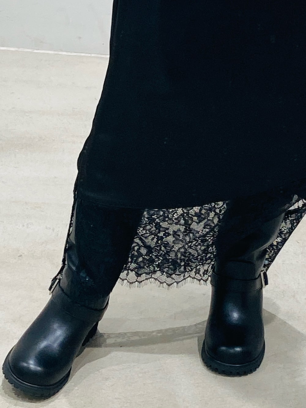 裾レースのスカート、エンジニアブーツを合わせて、きれいめカジュアルコーデをしました♪