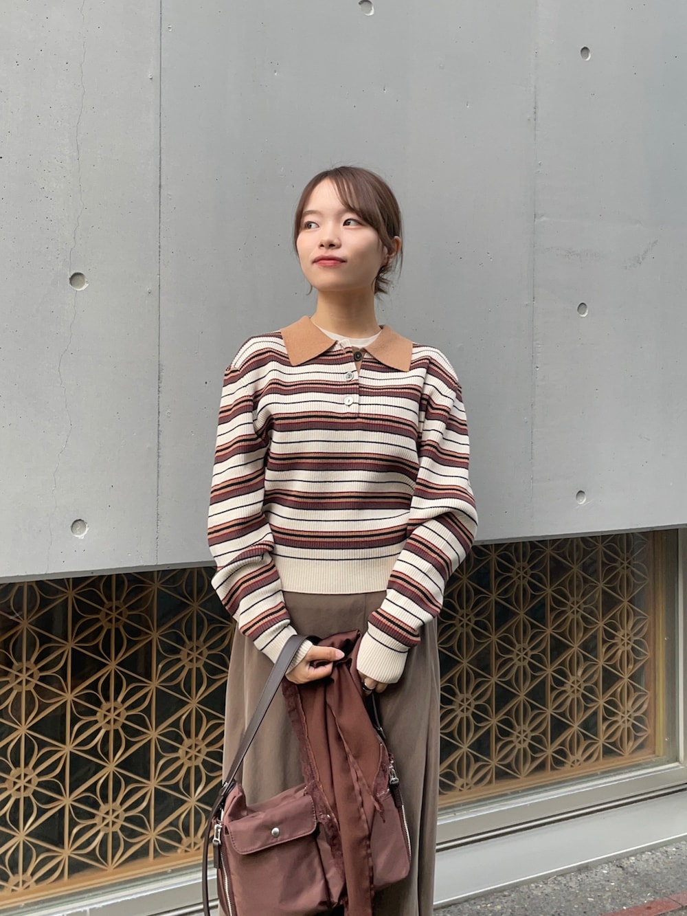 トップスは1枚で決まるコットンとシルクが混ざった着心地良いボーダーポロニットです!コンパクトなシルエットで、どんなボトムスにも合いやすく、程よい伸びで着やすいです!華奢見えも叶い、どんなコーデにも映えるトップスですよ✨色違いも可愛いので、店頭にて見てみて下さいね⭐︎