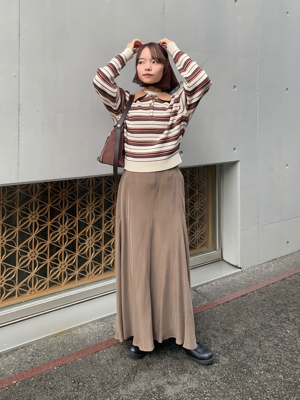 スカートは、キュプラ素材の裾がフレアになっているアイテムです!しなやかなシルエットで、広がりすぎなく、シーズンレスで使える可愛いスカートです!私の身長で若干ウエスト折って使ってます!