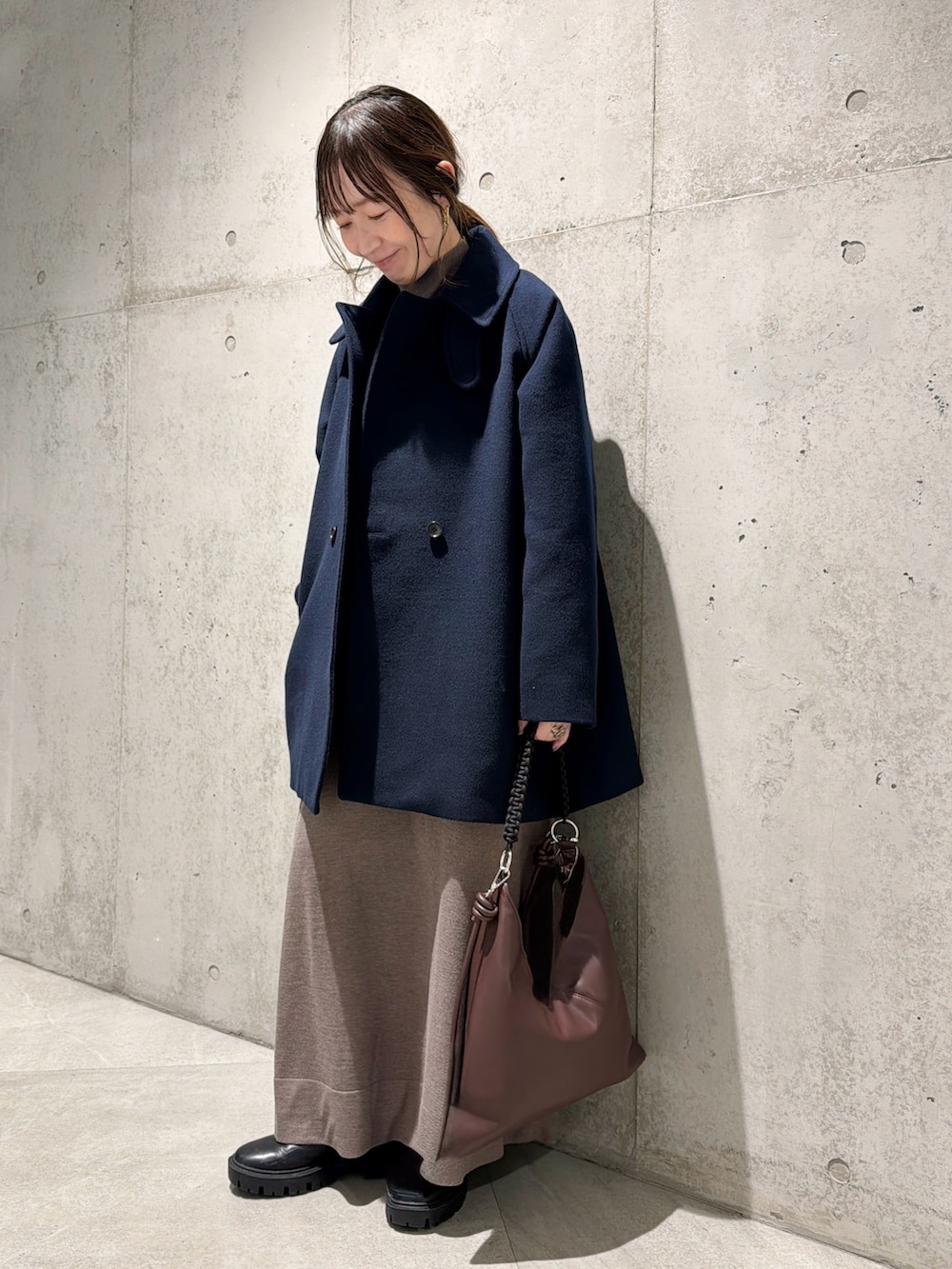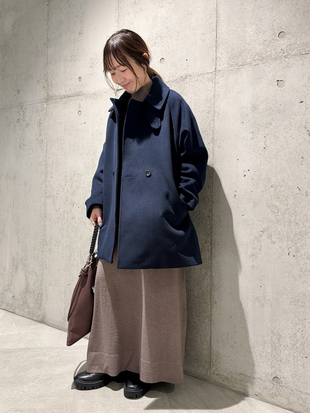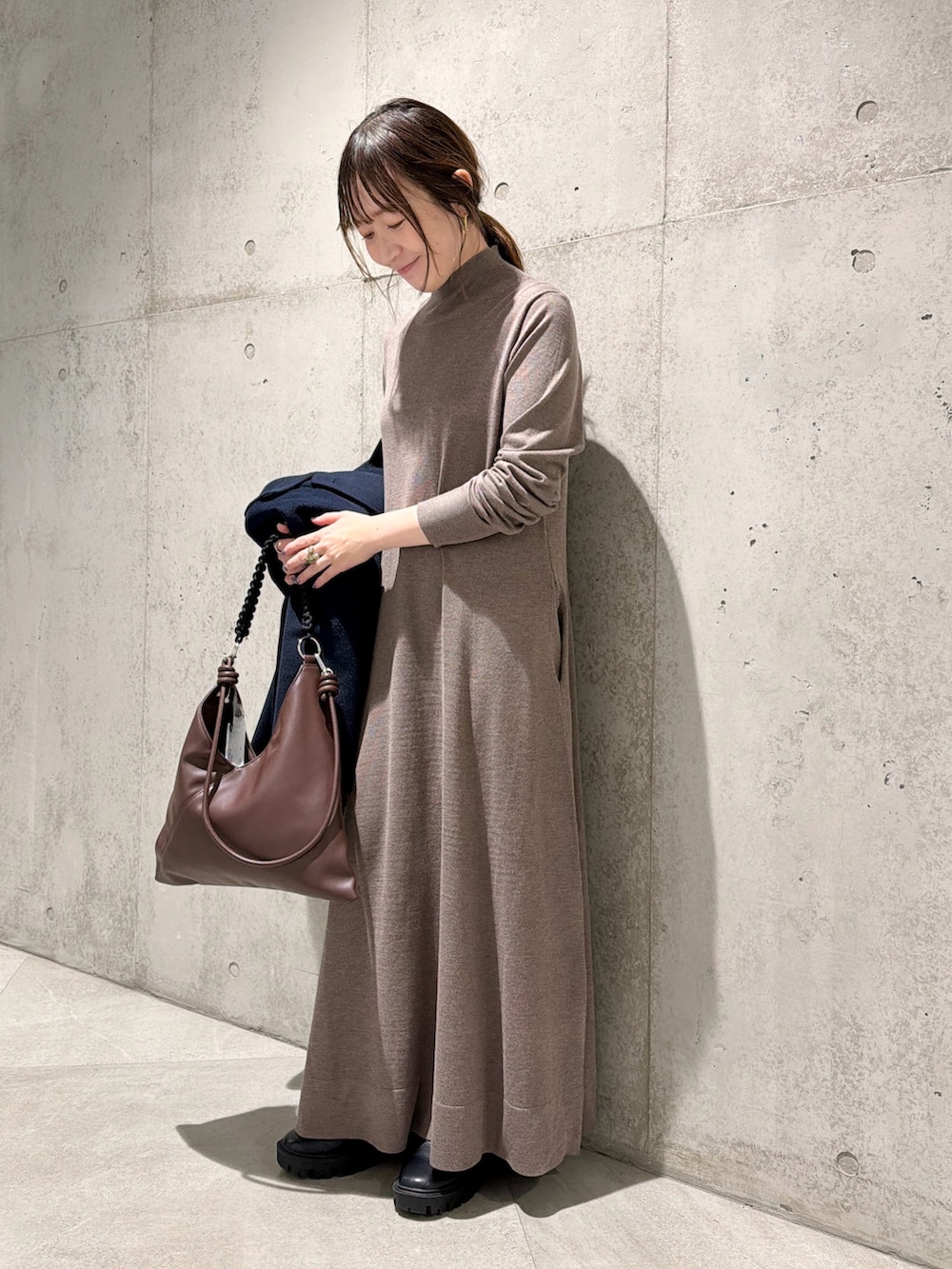 今回は、ニットワンピースと合わせた、キレイめカジュアルコーディネート。