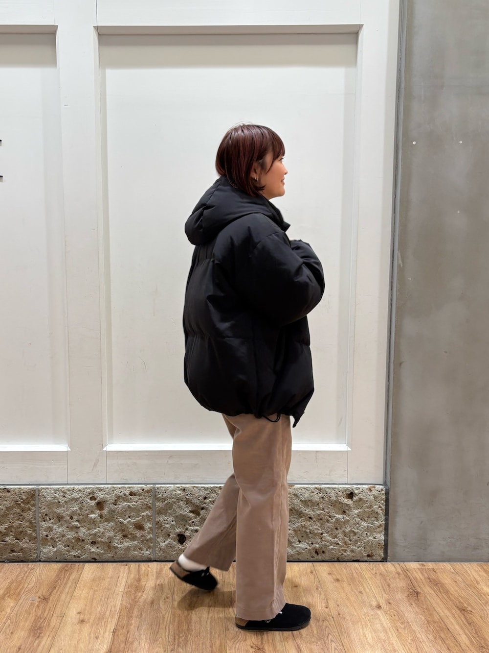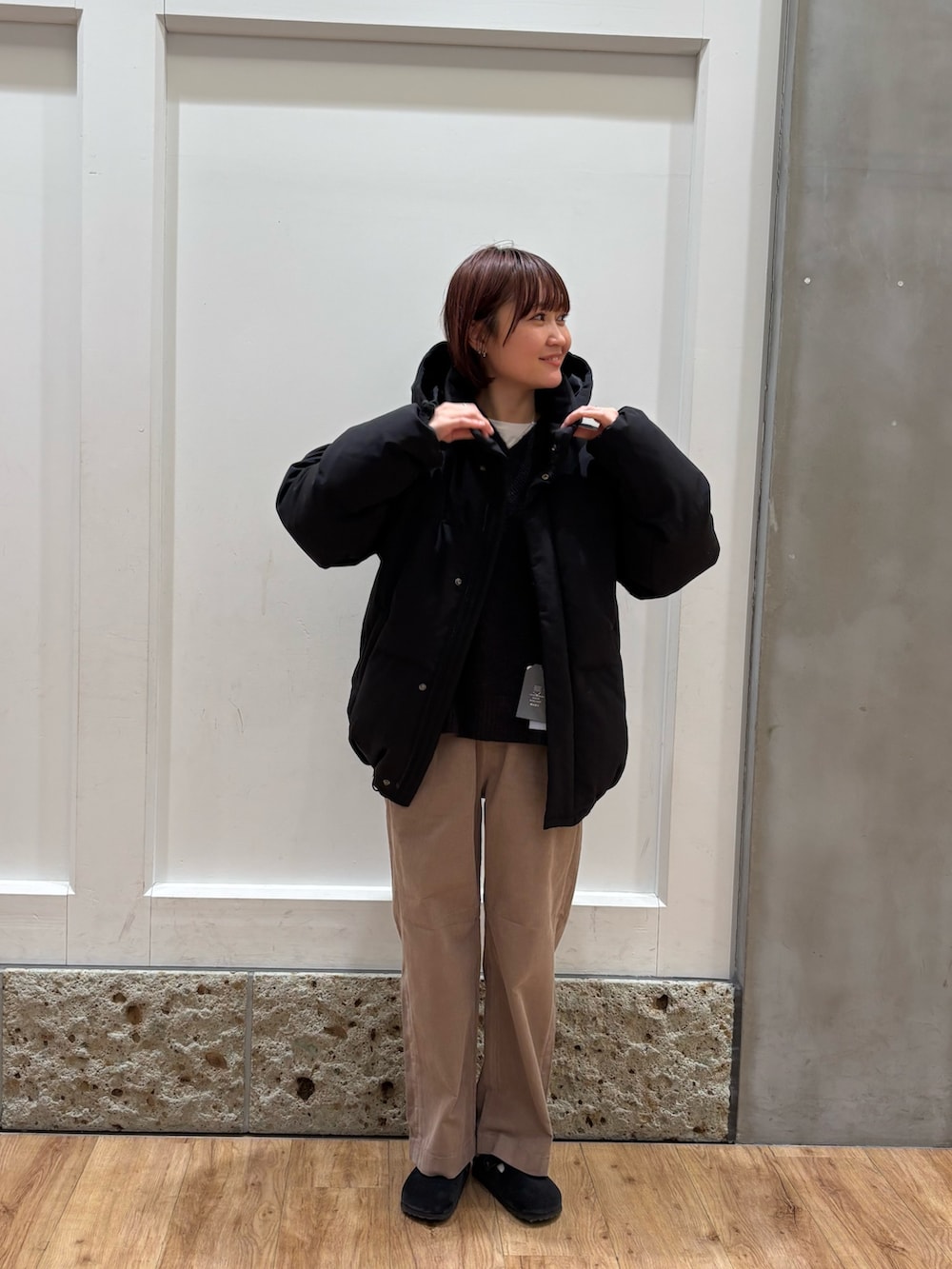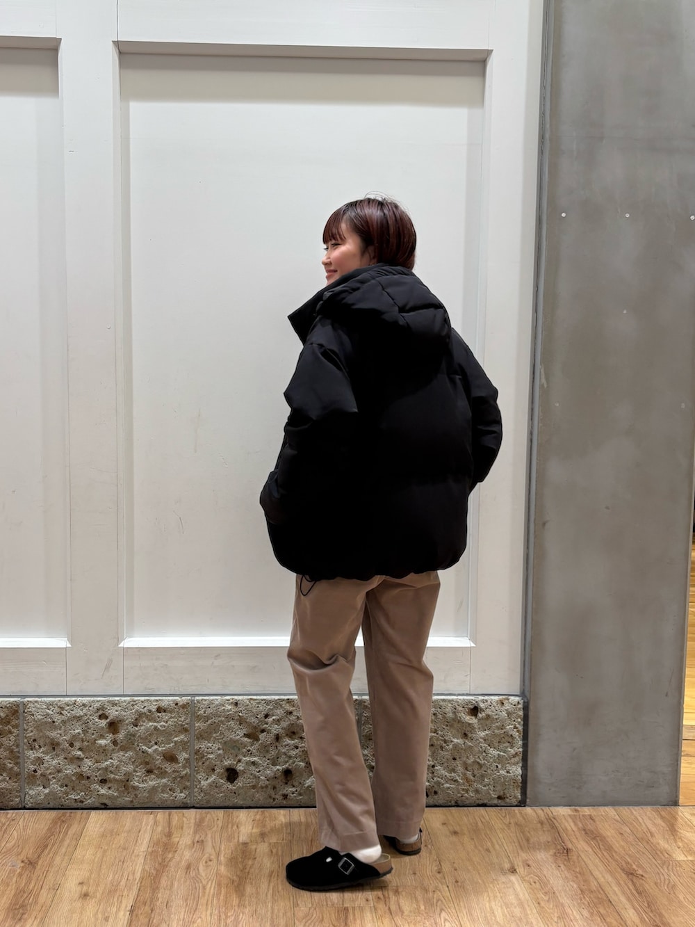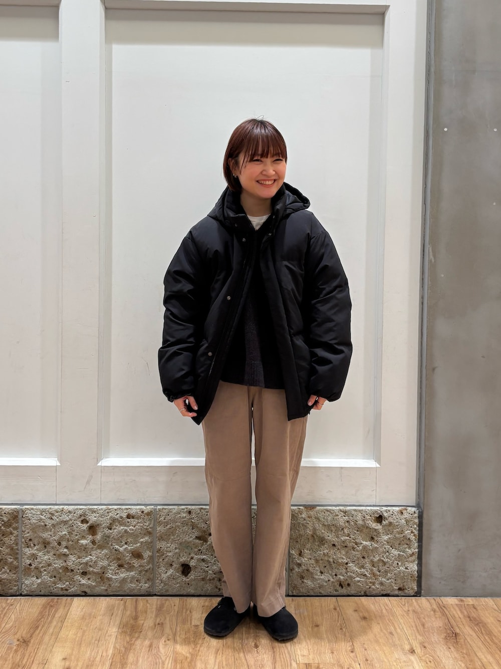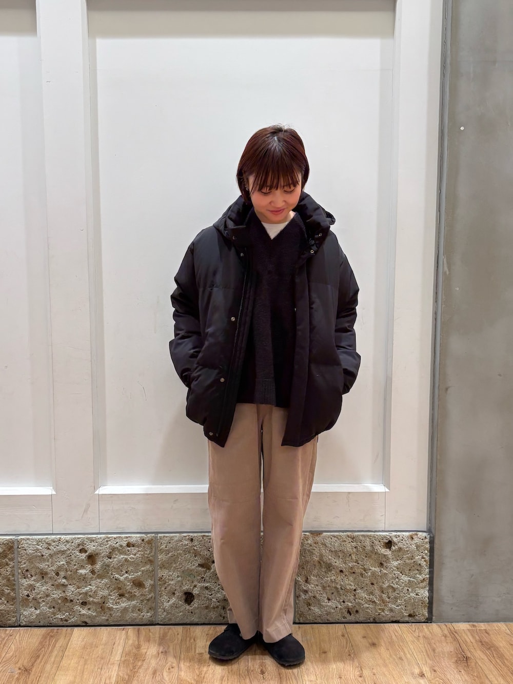 人気アイテムのミドルジャケット着用しています。ほどよいボリューム感とお尻まで隠れる長さがあるので印象も見た目も重たすぎないダウンアウターをお探しの方におすすめです◎