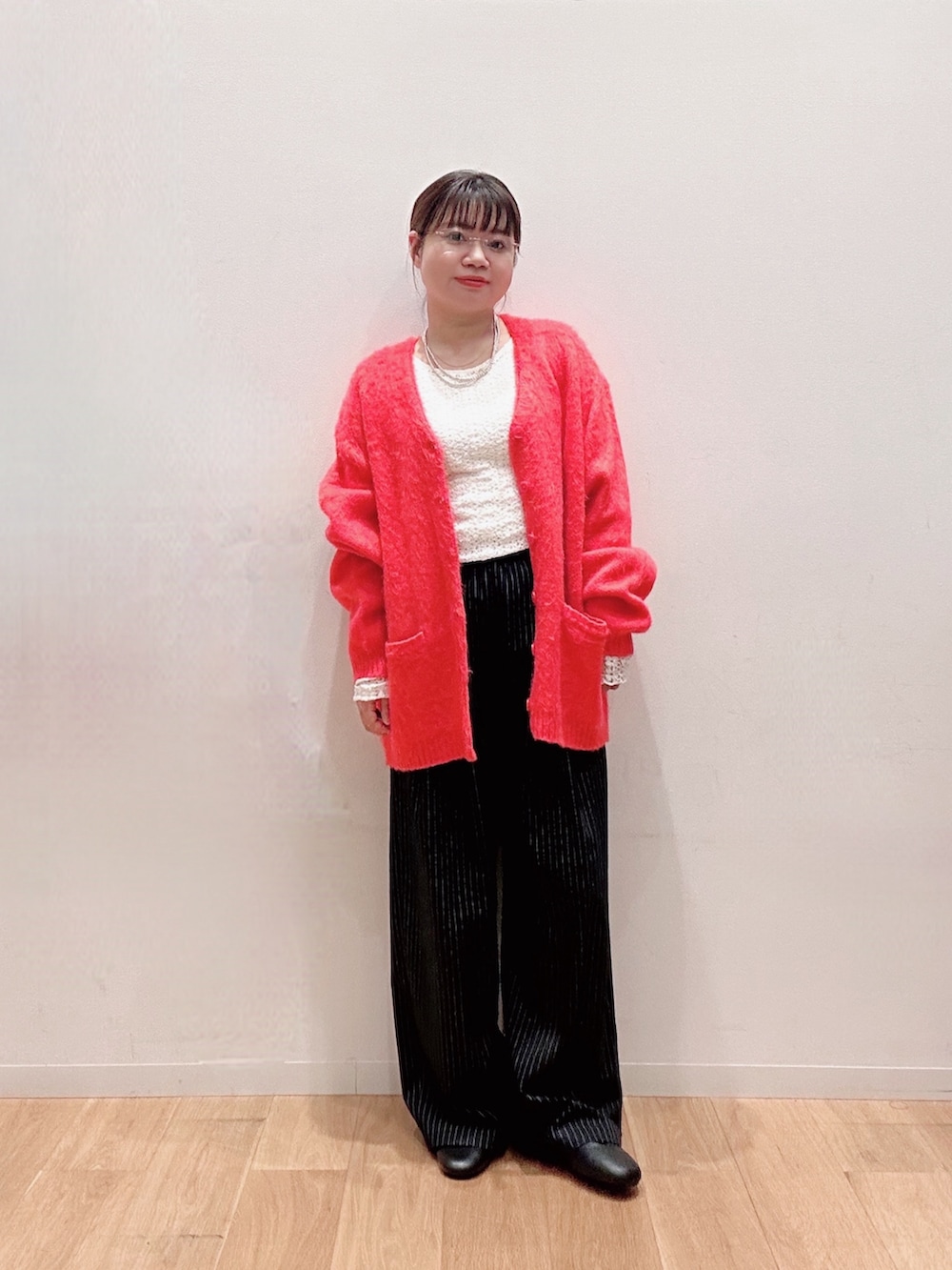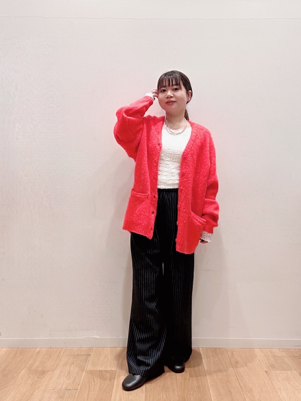 透けん感があるので同色のインナーを着るとまとまります☺️